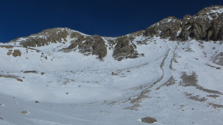 Montgenèvre (Villa Soleil) >> Vallon des Baisses >> Rochers Charniers par combe ouest contre Crête des Charniers >> Descente combe ouest plus au sud