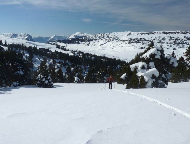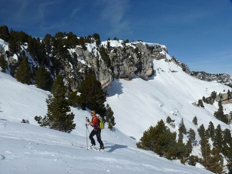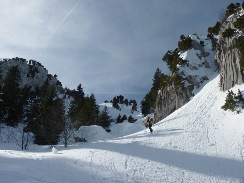 stable dans la montée au col de l'Alpe, c'est préférable vu les qtées sous les auvents. Malgré l'encaissment et l'orietation de ce couloir, la neige y est de qualité un peu moindre que le matin, mais ça reste très bon