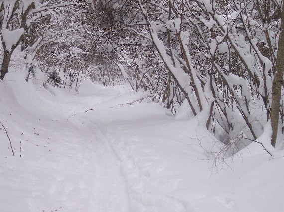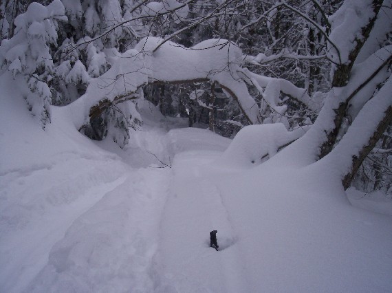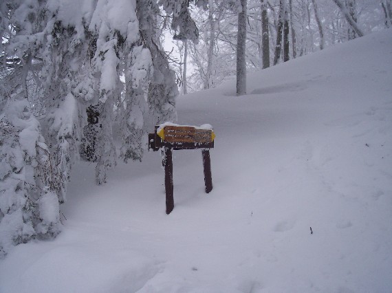 Impossible de sortir au sommet 5 mètres de visibilité à peine.Avec un tel matelas de poudre ça passe de partout dans la forêt