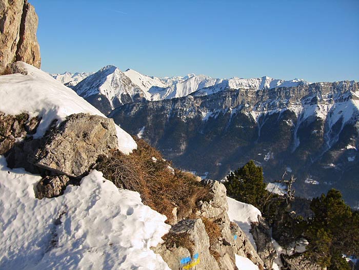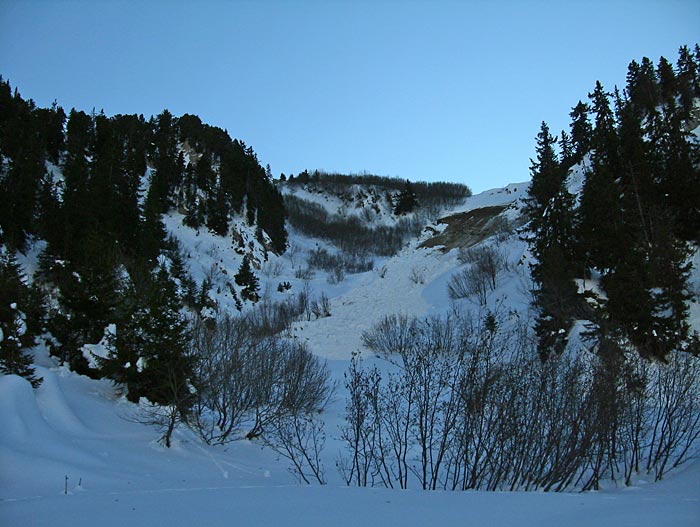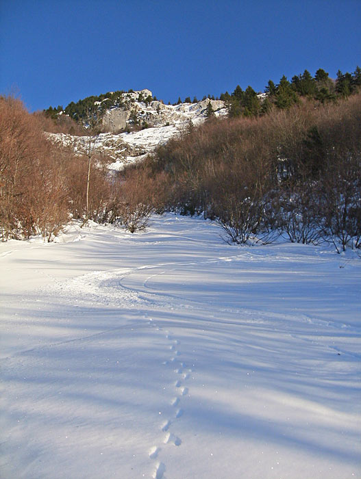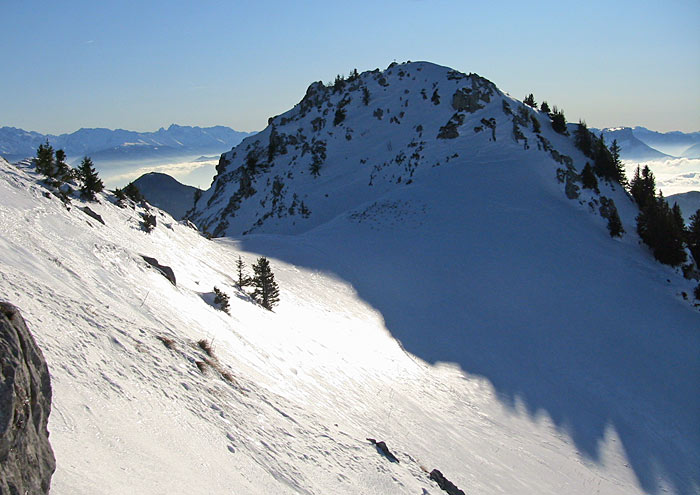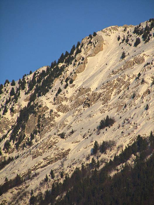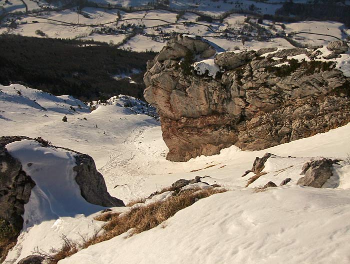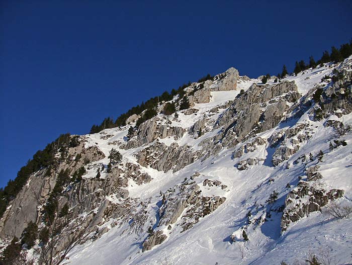 Le passage de la petite barre du haut est à bien repérer, et doit se déneiger vite car plein sud dans les rochers, puis en bas ça passe un peu de partout.