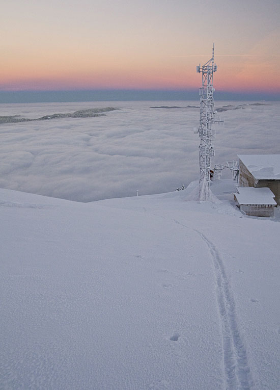 Beau pour les yeux, moins pour le ski mais, surprise, j'ai pu skier sans toucher sur cet itinéraire qui, en temps normal, ne passe pas avec une seule chute de 50 cm de neige froide. D'autres images et détails [ ici->http://lta38.over-blog.com/article-reveil-froid-aux-chaudieres-61165343.html].
