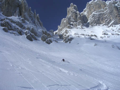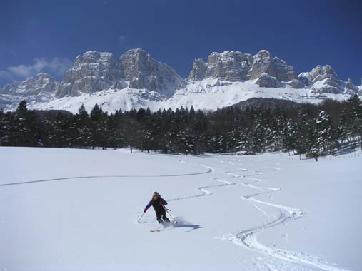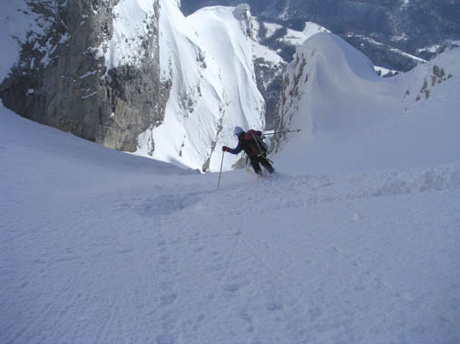 La foret qui a du être jardinée est étonnement skiable, la neige y est resté poudreuse.Le couloir est très beau. Le décors du balcon Est y est pour beaucoup.