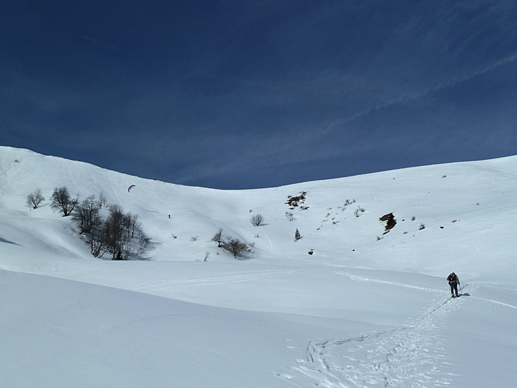 le combe nord est un peu plus tracée avec le passage du goulet du bas bien damé par les dérapages...