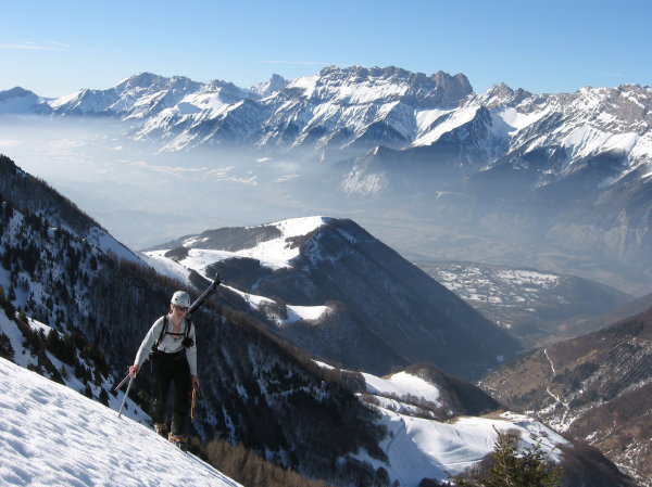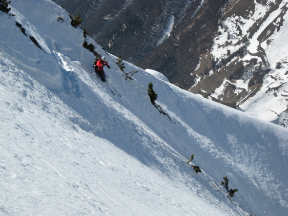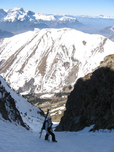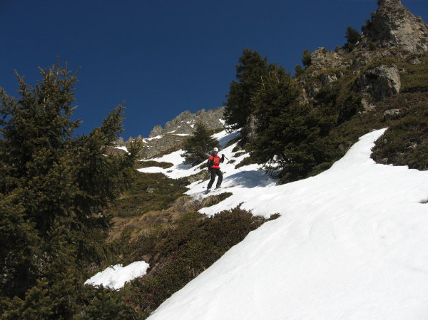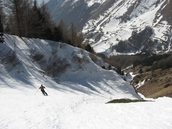 Repéré depuis la virée au laton l'avant veille, la ligne quoique sinueuse est sympa. Ca rapelle un peu les marmes SO avec un cheminement à trouver. Du bon ski sauvage et confidentiel à la Michel Armand. Déjà descendu auparavant? Pas trouvé d'infos sur cet itinéraire. Pas très raide mais superbe ambiance.