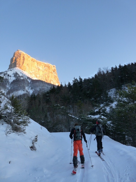 Quelques accumulations, notamment vers le Pas de la Selle, qui n'ont pas bougées à la montée. Un bombé dans le haut du couloir, nous a fait douté, mais n'a pas bougé. Bonne cohésion dans l'ensemble, sauf sous le Col de L'Aupet, la neige ayant tendance à ne pas bien accrochée dans les parties raides. Purges en face Est.