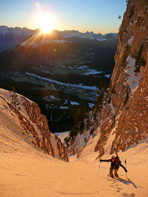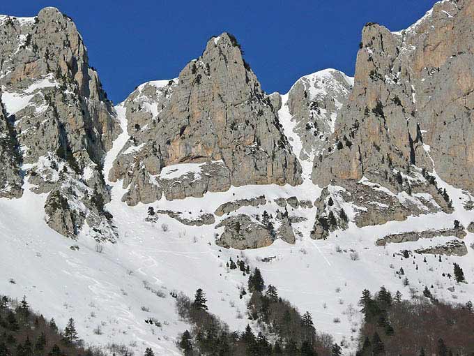 De beaux couloirs typiques du Vercors dans un coin où l'on ne vient pas si souvent. Ca change un peu de la classique barrière est entre Veymont et Moucherotte mais c'est aussi beau. Une bonne trouvaille de Jo pour une sortie vite faite du matin.