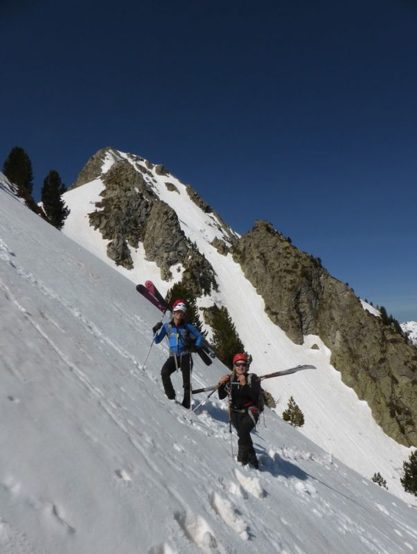 Départ de 1900 --> Rochers Motas --> face NE jusque vers 2000 --> remontée par l'épaule bordant la face --> col du Sabot --> Cote Belle face ouest. D+/- 1100.