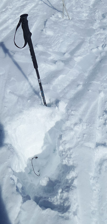 pas de regel sous 2000 m. Vers 2200 m combe de bridan en nord-ouest, une petite croute de regel : trop haut pour la pluie trop ombragé pour le soleil => effet d'un brouillard de la veille ?