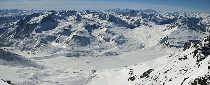 Peautage vers 2400m >> Montée à Ronce par L8 >> Descente face sud (L9) >> Retour par route jusqu'au col du Mt Cenis>>pistes de valcenis.