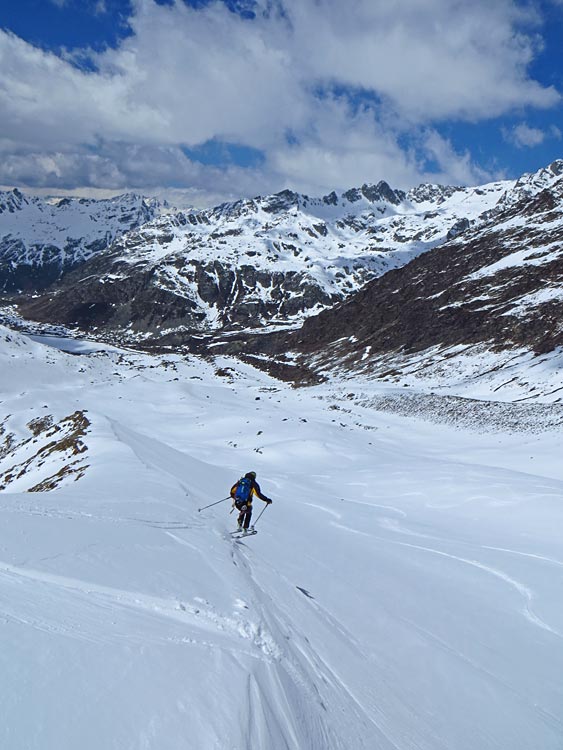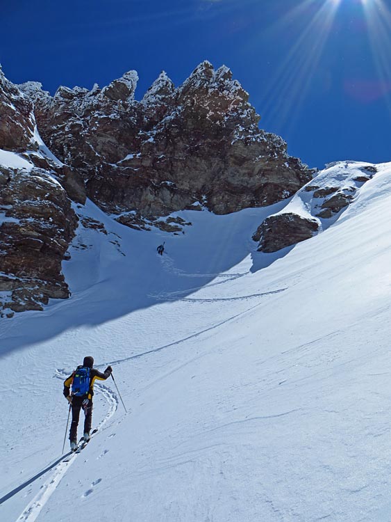 A6 du topo : montée par le glacier du Grand >> col des Vedettes >> Ruitor par le petit couloir ouest >> Col des Vedettes >> glacier de l'Invernet