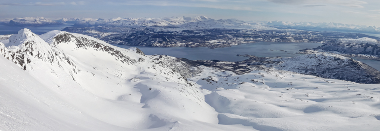 Du stade d'Arbogen (Sandtorg) ; Sætertinden par l'arête sud-est >> descente arêt nord-est puis combe est jusqu'au lac sous l'Haukebøtinden >> remontée à l'Haukebøtinden>> descente sur l'Årbogvatnet >> stade d'Arbogen (Sandtorg)