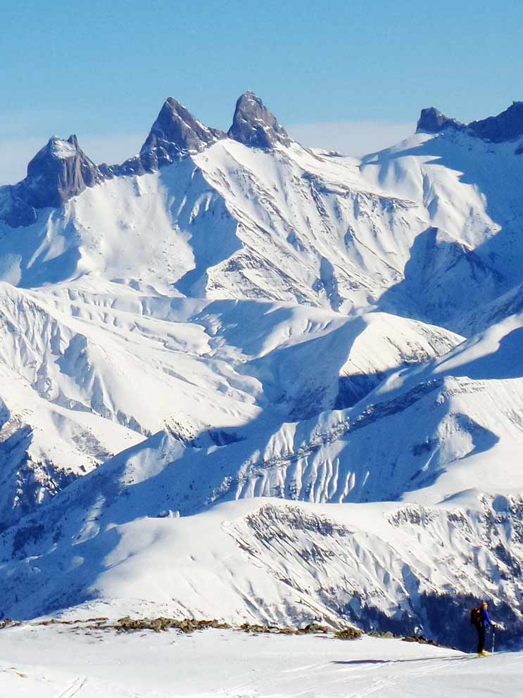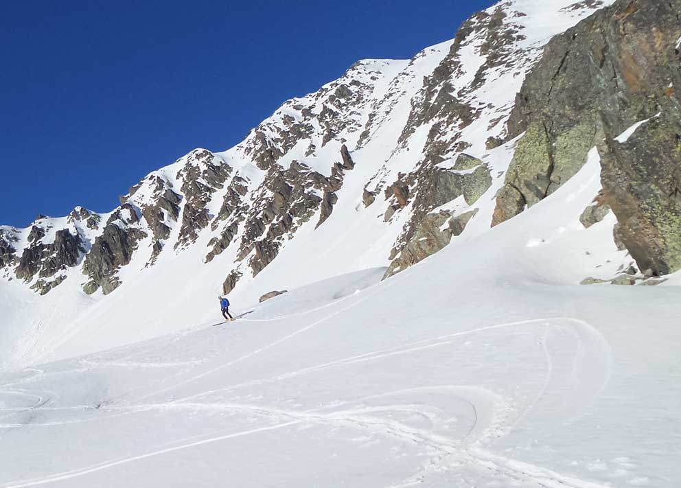 Boucle nord->sud : un choix discutable pour la qualité de neige et aussi du ski avec le long retour par la route, mais satisfaisant pour le paysage