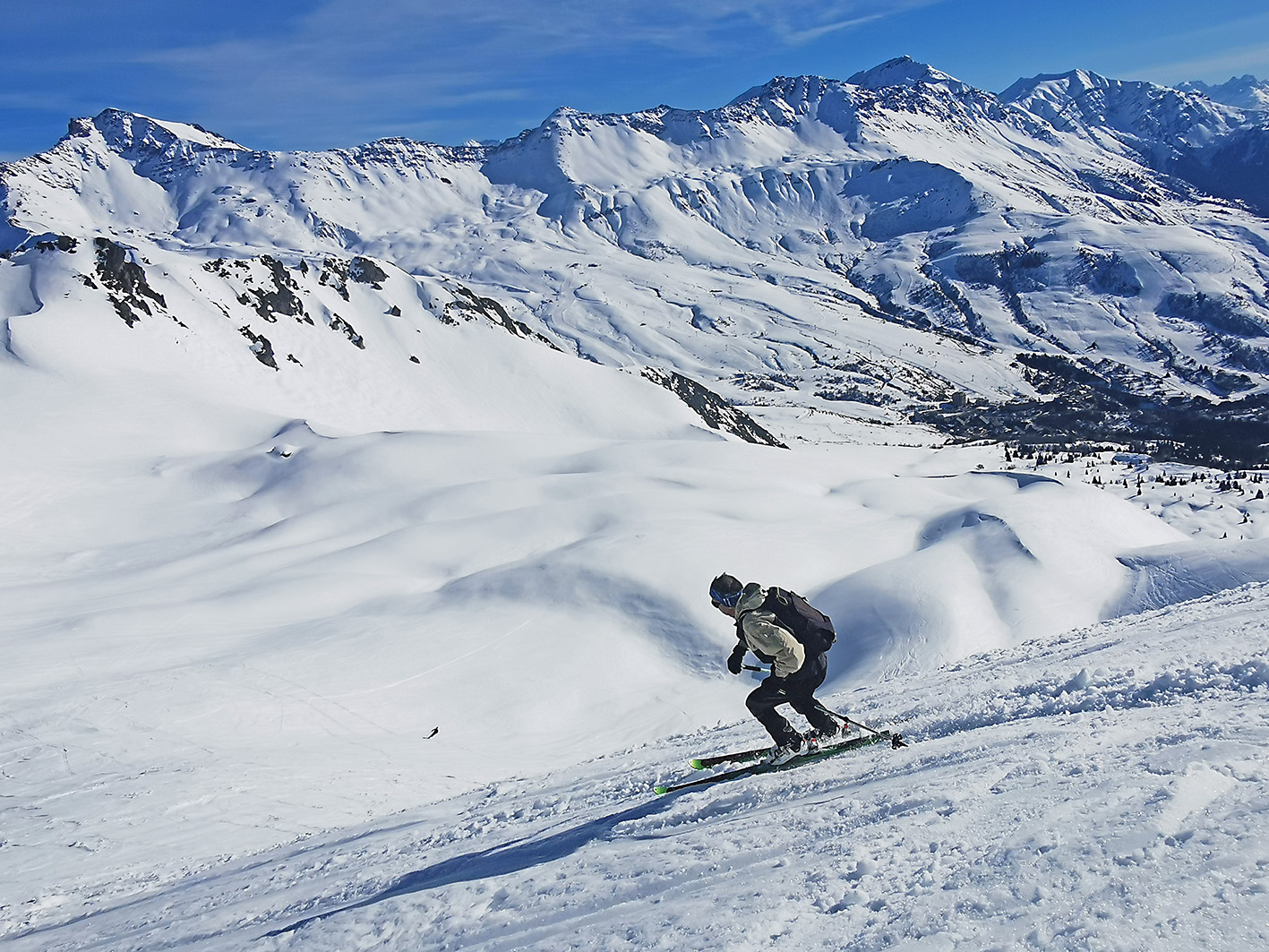Moquette homogène de haut en bas. Un peu plus ferme à l'ombre > 2300 : gros sel gelé mais bonne accroche