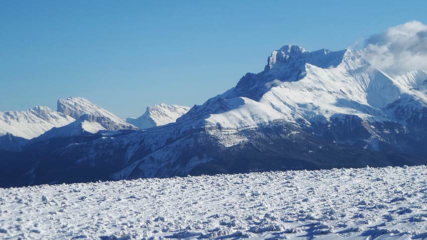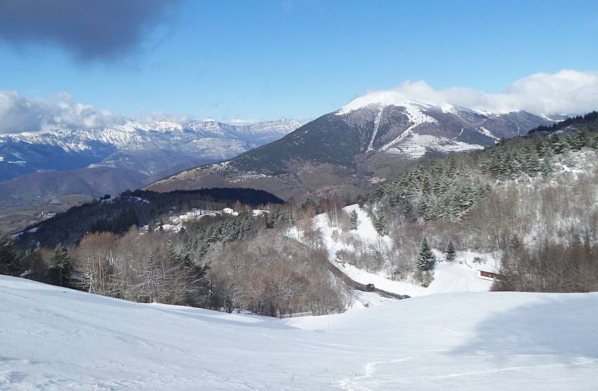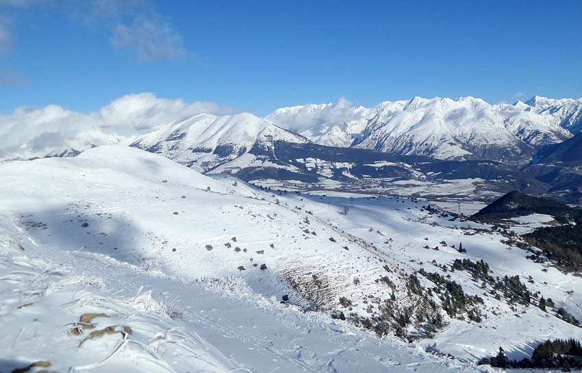 très peu de neige. Le cumul hors vent n'a pas dû dépasser les 30 cm avec une distribution très irrégulière. Pistes d'alpin praticables grâce aux chemins et terrasses.