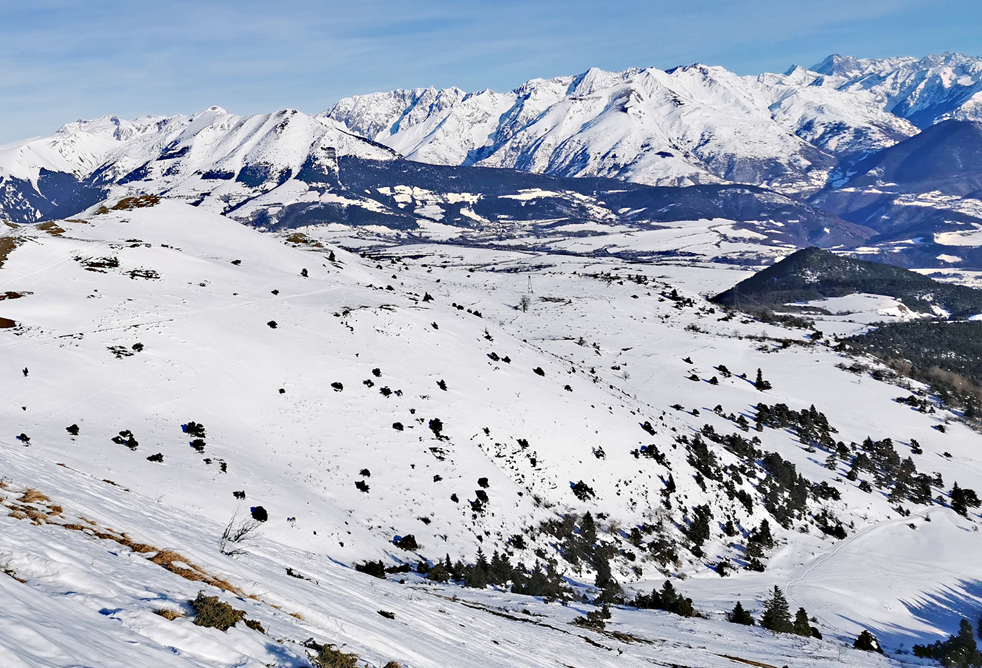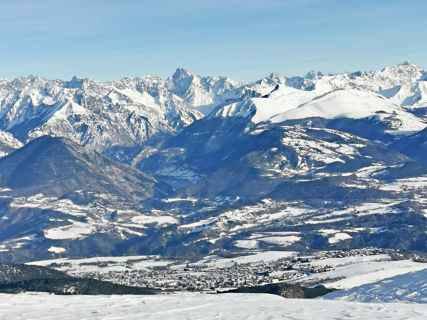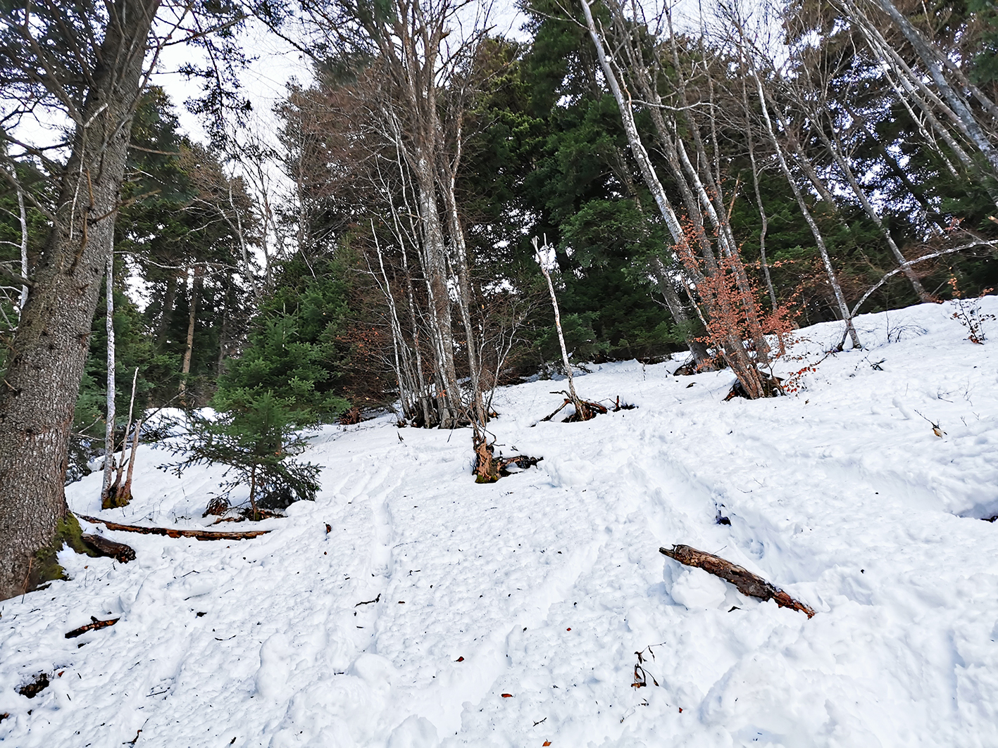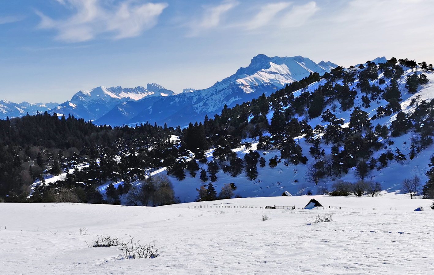 Pour changer du confinement poudreux Chartreuse-Vercors (nord). Après avoir renoncé au départ de la Peyrouse depuis la Ville de Monteynard (A3 trop peu enneigé)je me reporte sur les Signaraux où les pistes d'alpin sont préparées et celles de ski de fond en excellente condition. Le versant est de l'Horizon est en neige de printemps quasiment portante même à la montée. Pour la descente du bois d'Arve il faut normalement deux fois plus de neige qu'aujourd'hui. Dans ces conditions la neige lourde permet de sauver la situation. Déconseillé néanmoins de suivre cette trace dans les conditions actuelles.