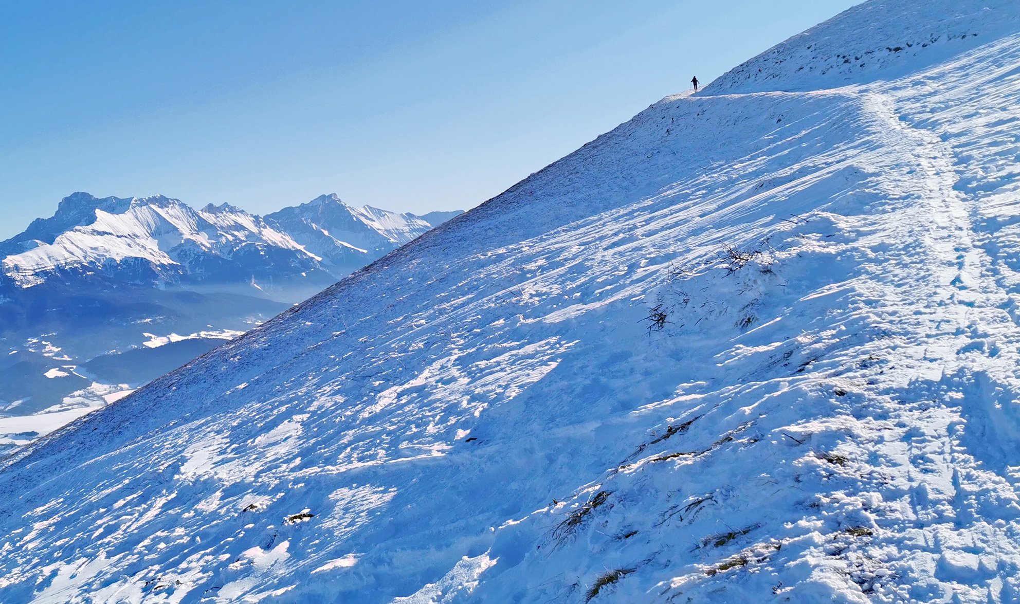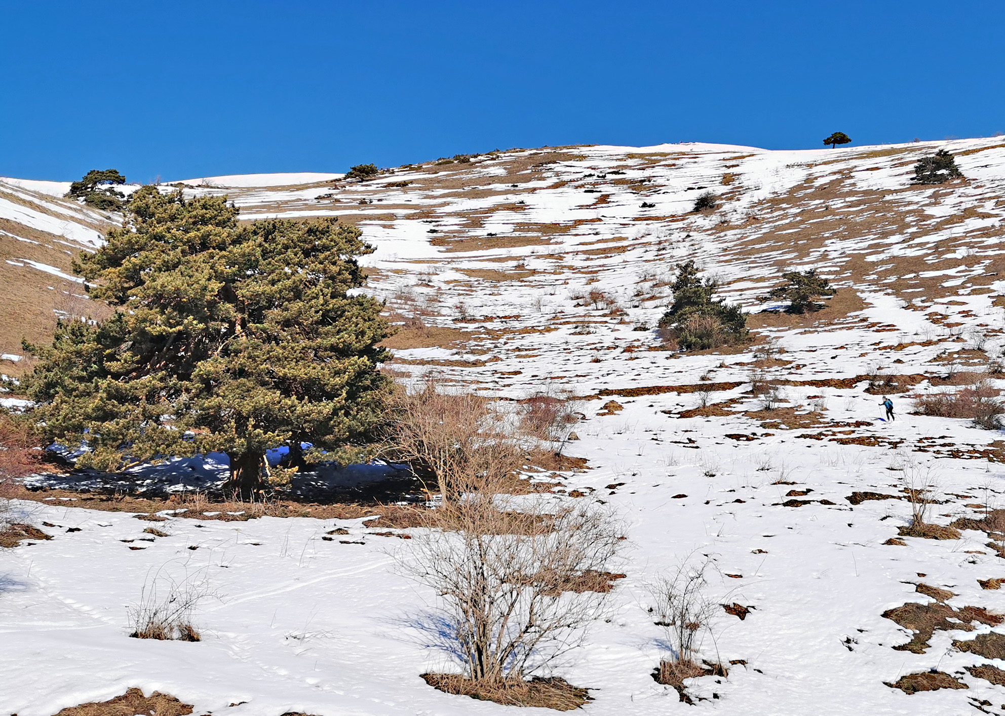 Il ne devait plus rien rester de la chute précédente et celles de Janvier sont très inférieures à celles de décembre. Descente sud-est néanmoins amusante ou comment skier avec presque rien.
