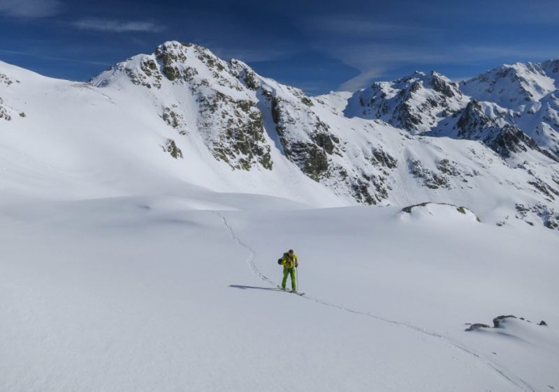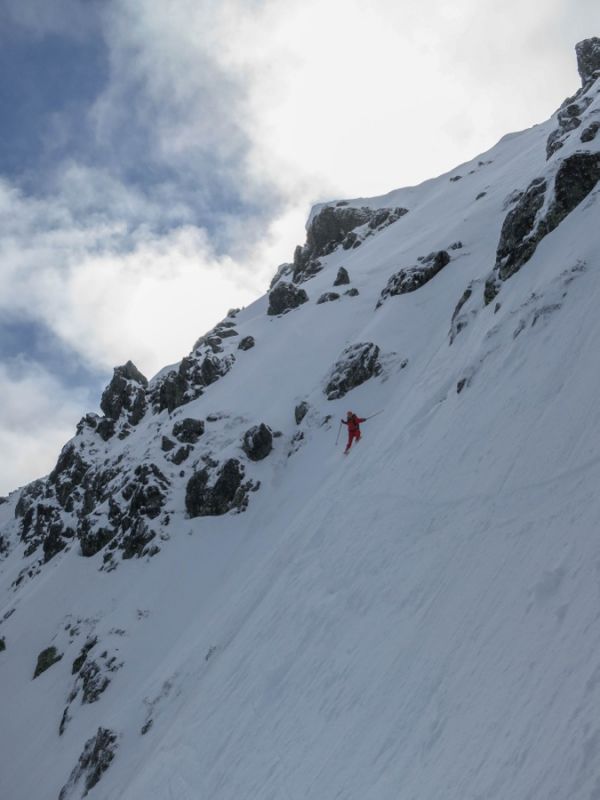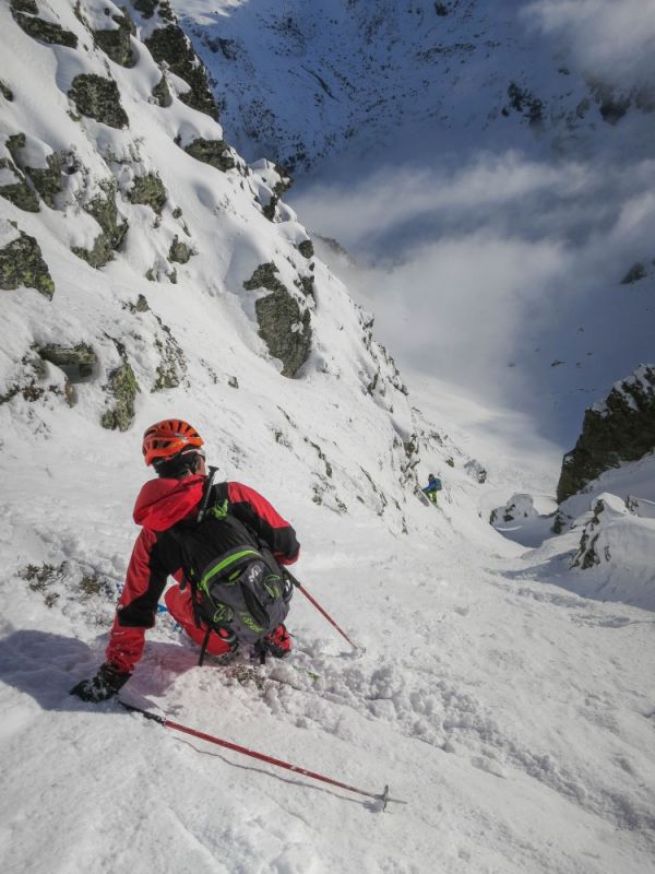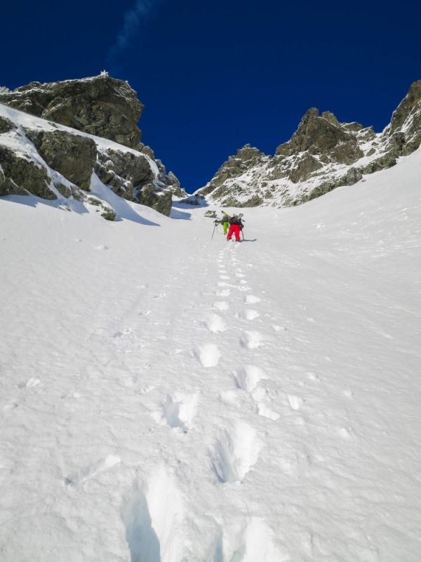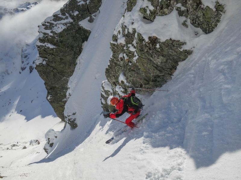 Deux jolis couloirs en conditions de neige équivalente (petite poudre sur dure). Unanimement, nous avons trouvé le Sifflet plus difficile que le Scia-Moi. Ce dernier présente une section soutenue à 45° mais avec de la place alors que le premier plus de 50 m à 50° avec peu de place pour évoluer (probablement qu'en fin de saison c'est plus délicat que lorsqu'il est gavé en hiver). Du coup, nous penchons plutôt pour 5.1 pour le Sifflet et 4.3 pour le Scia-Moi.