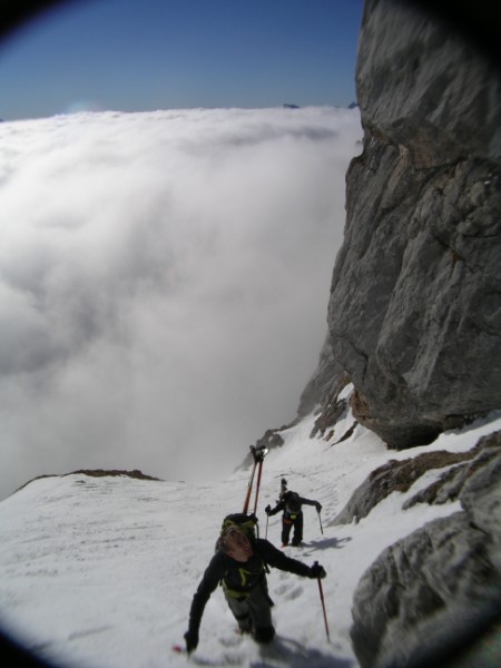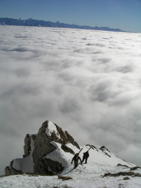Très beau, heureusement que la mer de nuage s'arrêtait au pied du couloir. Pour la descente, prendre rive gauche, car il y a des traces d'escalier dans le couloir.