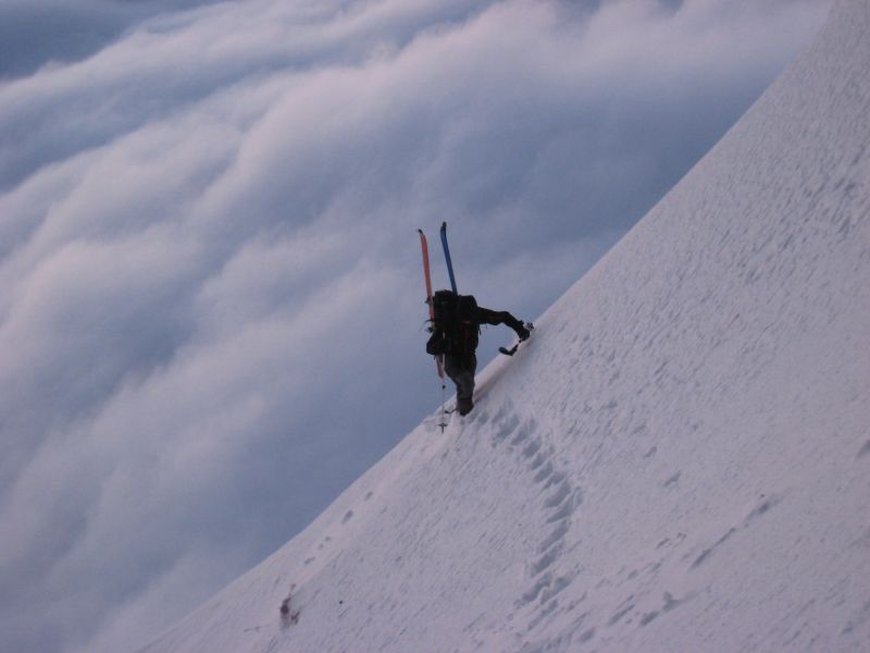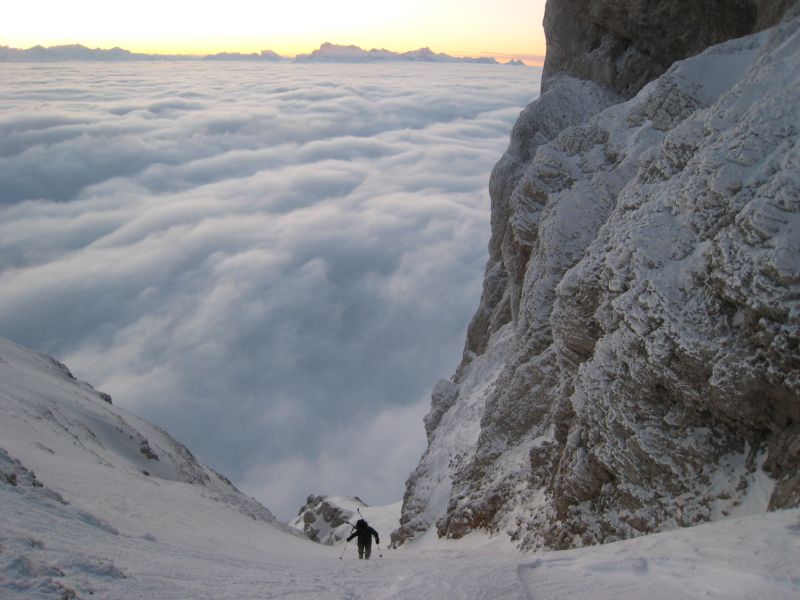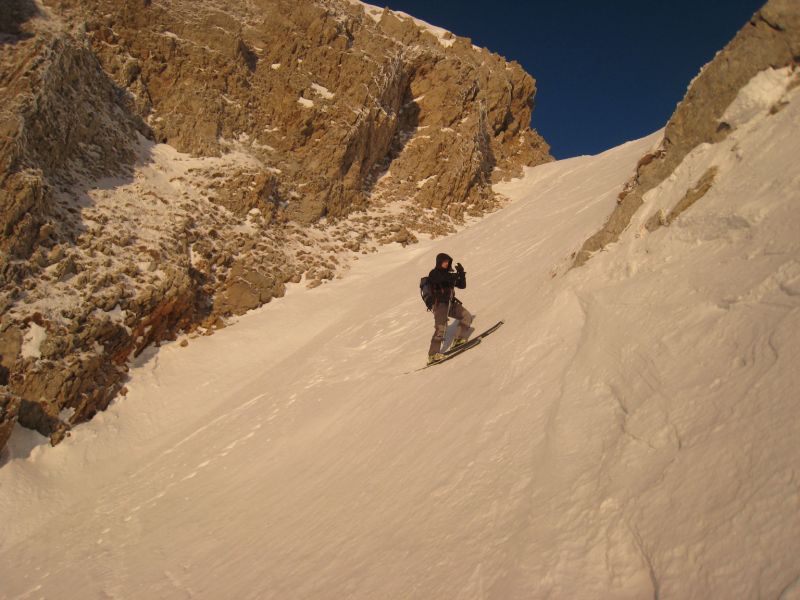 Couloir bien remplie, le vent n'a pas trop dégarni l'approche