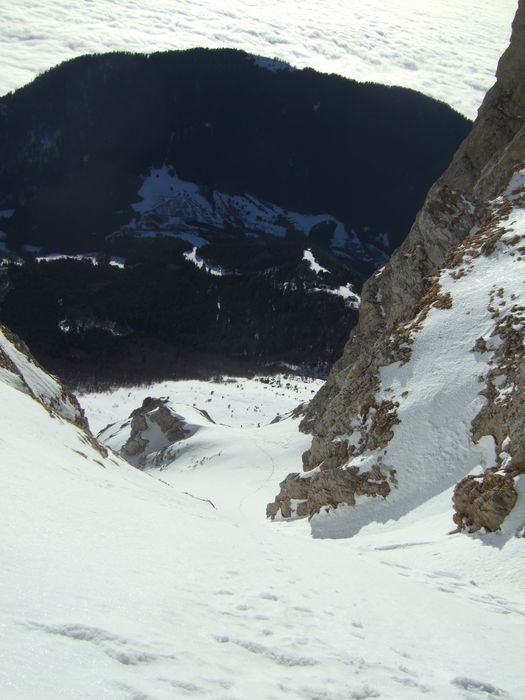 Le couloir est rempli convenablement pour le ski, il voit le soleil un peu après 8h à cette époque.