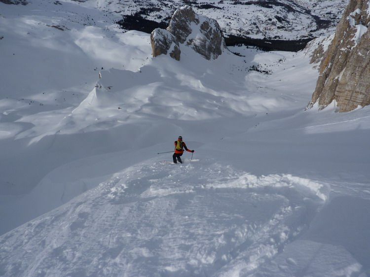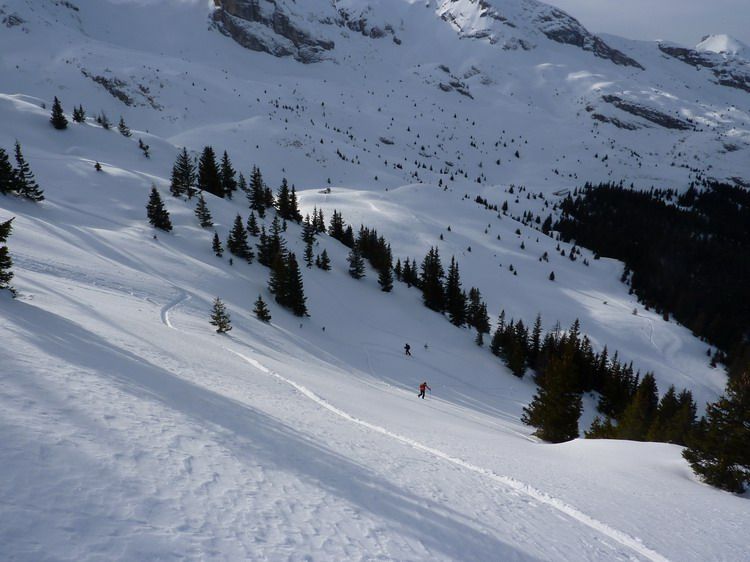 Aucune croûte glacée par ici, un peu irrégulier et cartonné dans les vallons mais grosse poudre dans la rampe, dans la face et dans la forêt.