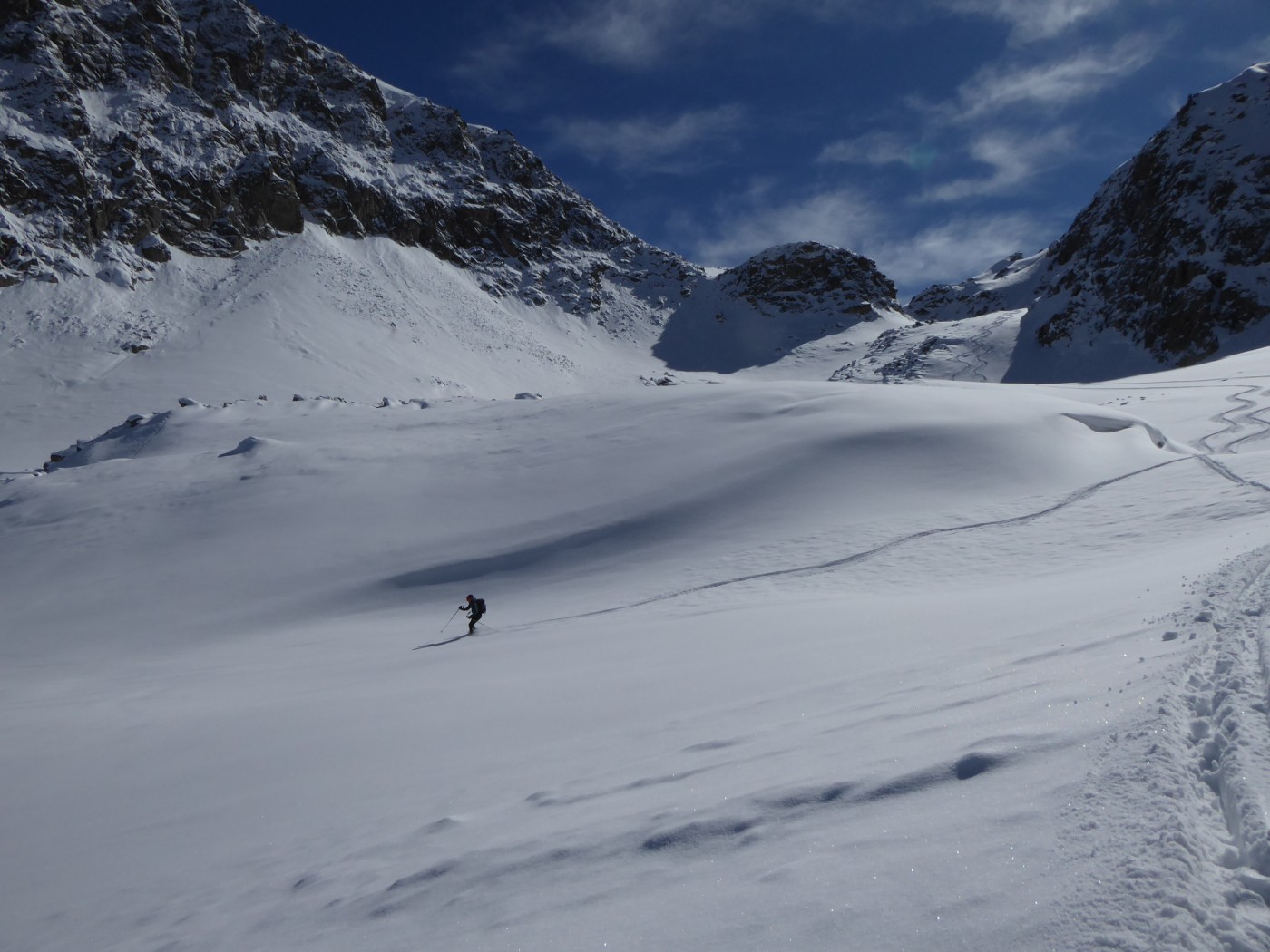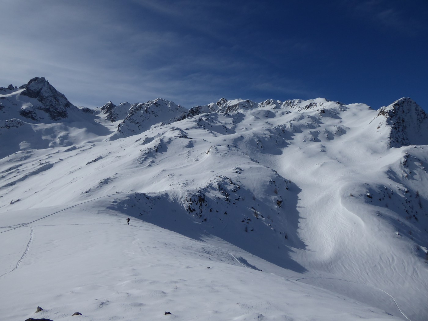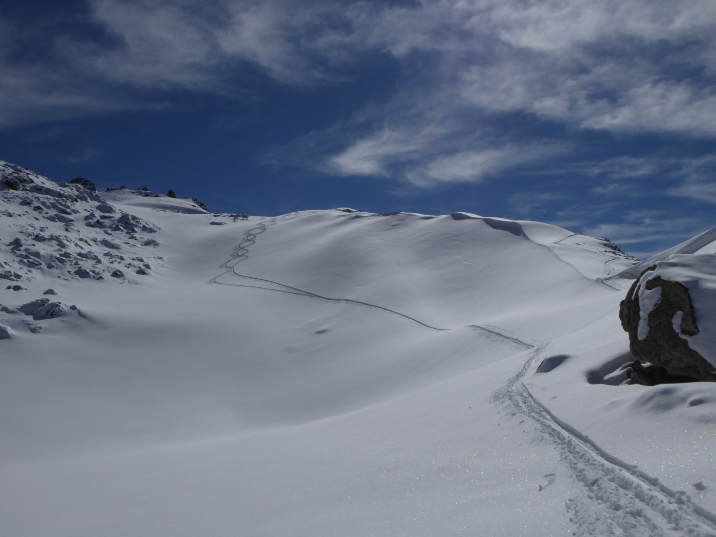 Très bonnes conditions de neige. Les dernières chutes ont apportées 5 à 20 voire 30 cm de neige très légère. Dans les orientations skiées (surtout nord) elle est restée froide et très agréable à skier.