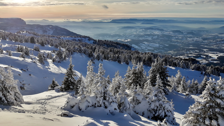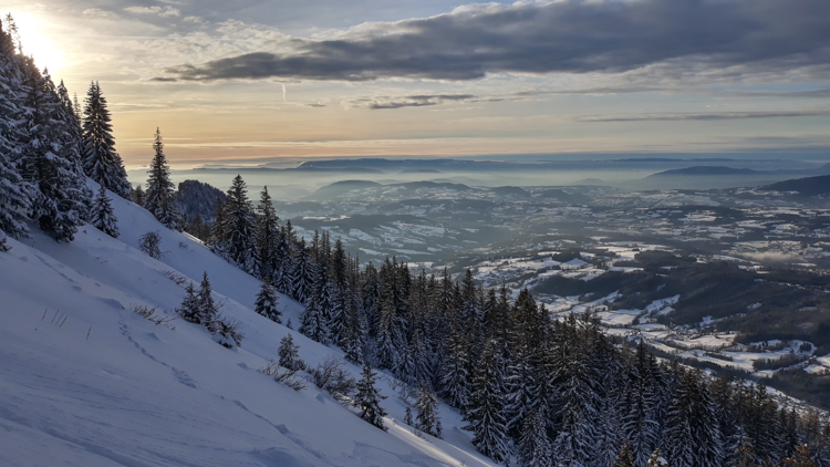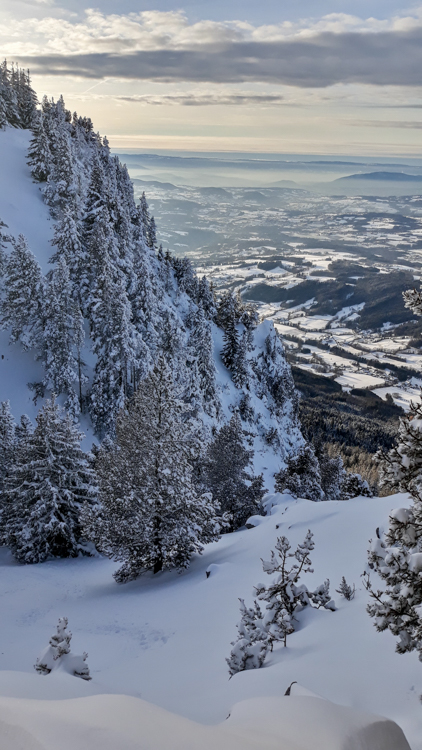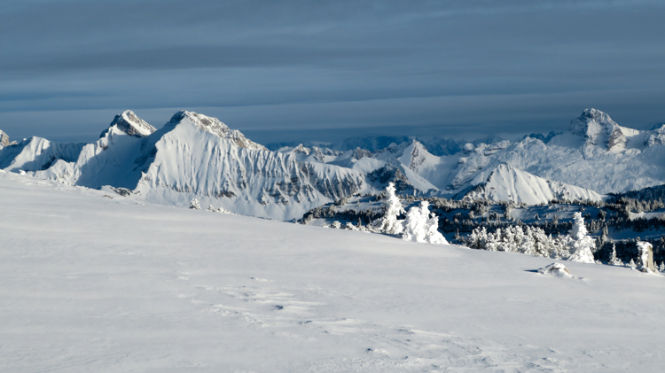 Superbe lumière et meteo qui a bien tenu l'après midi, un grand plaisir pour les yeux, pour le ski c'est agréable également hormis sous 1300 m où il faut faire gaffe en forêt sous 1300 m