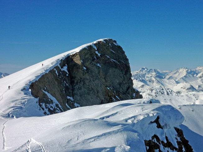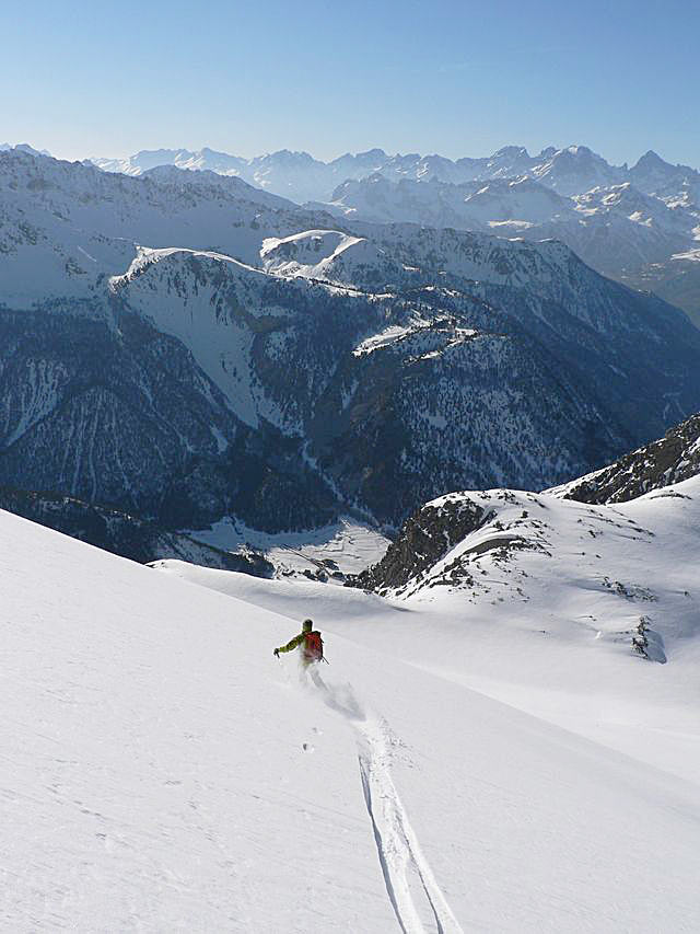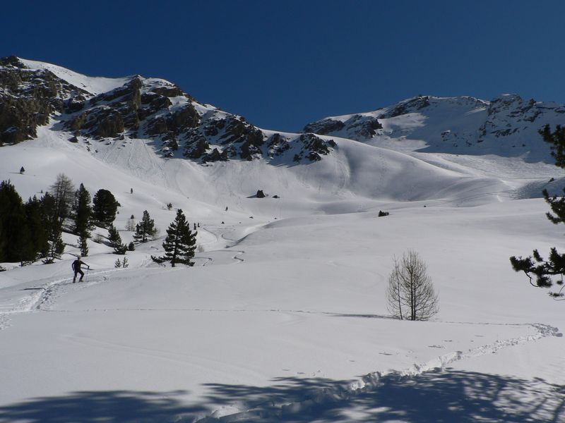 Première sortie avec mes amis chamoniards venus chercher les belles neiges des hautes-alpes, ici le Queyras après trois jours dans les Ecrins. Trois profs au même collège de Chamonix, s'étageant avec moi sur quatre décennies : un petit 30 pour Alex (AMM), fin de quarantaine pour JBM (GHM), la cinquantaine finissante pour Michel (GHM)...et la soixantaine bien dépassée pour votre serviteur.