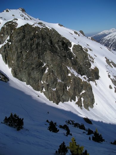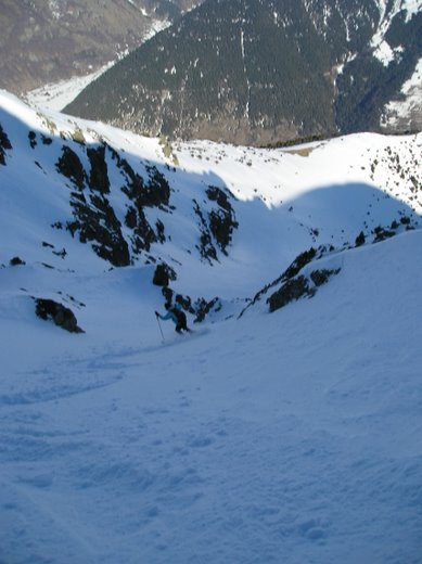 On trouve un peu de tout comme partout en versant ombragé : carton bien portant agréable à skier, zones de vieille poudre tout aussi agréable. Au soleil ça avait bien chauffé vu notre timing tardif.