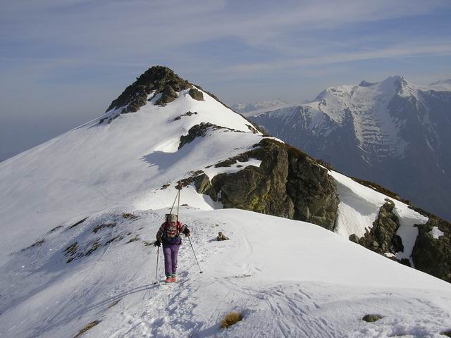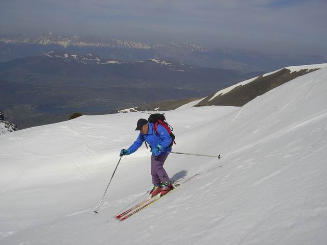 ça skie encore jusqu'à st honoré, moyennant un petit portage de 5 à 10 mn. Neuf personnes sur le parcours (8 randonneurs 1 raquettiste) dont 80%de retraités!! Il faut chercher les parties skiables sur le bas, l'enneigement devient limite.Descente à 12 h idéale pour une neige transfo à point malgré le vent qui s'emplifie en cours de matinée.