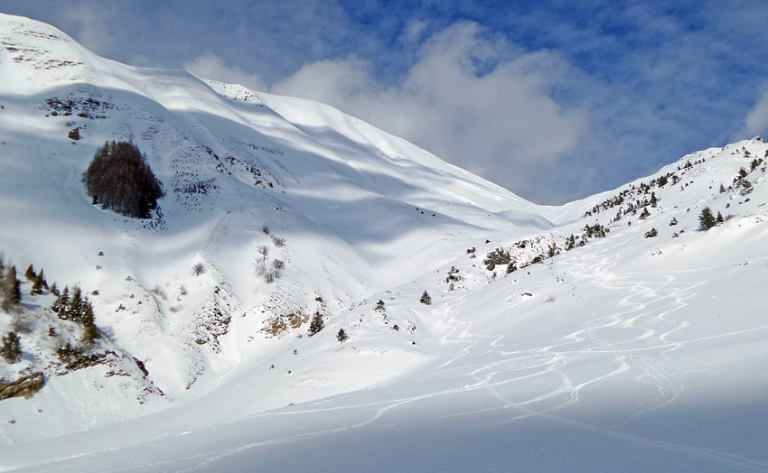 Premier tabor de la saison un 7 mars ! Encore peu tracé ce lundi. Le chaînon de l' Armet est bien rempli et les taupinières de l'autre côté sont bien blanches mais c'est peu épais.
