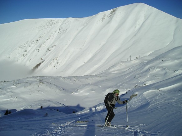 Superbe journée au dessus de la crasse qui est restée bien haute toute la matinée. T° agréables au soleil: la face sud du pérolier commencait à purger vers 13h00. L'enneigement semble moins bon qu'en Chartreuse et Vercors à basse altitude. Par contre au dessus de 1500 la sous couche est bonne et le vent a bien soufflé : méfiance au dessus de 2000...