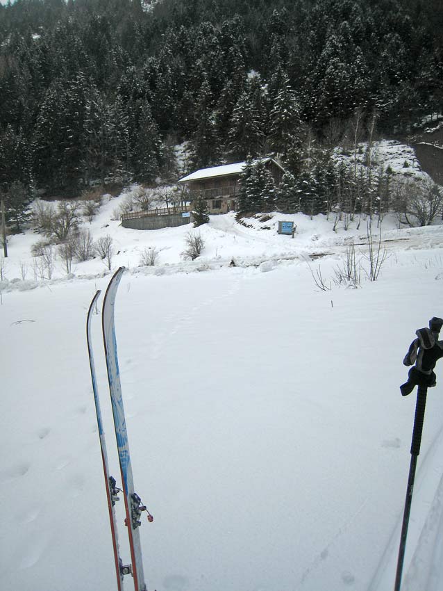 ski jusqu'au "Chalet" par ancienne piste et forêt. L'altitude est 1150 et non 1200 comme indiqué sur A9.