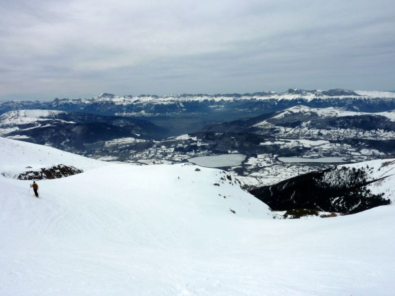 Croupes bien pelées mais enneigement correct sans plus. De visu, la combe de la Mouche semble bien chargée.