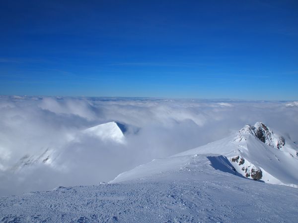 Départ tardif pour attendre l'éclaircie annoncée. Le but était de prendre l'air et surtout le soleil. La descente du Tabor est horrible comme prévu avec cette neige croutée. Une fois la purée de pois tombée, j'ai poursuivi par le Pérollier et la descente en face Sud ne fût pas si mal que ça malgré un ski plutôt physique!