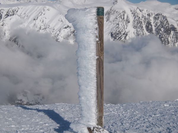 La neige est humidifiée par la pluie avec une croûte de regel dès 1800m en versant à l'ombre, c'est bien infâme a skier. En versant Sud, ça devient bon (sans être excellent!), mais l'enfoncement des skis est de 30-40cm (80 au patin). ensuite plus bas c'est du ski nautique, mais comparé à la croûte c'est bien mieux!