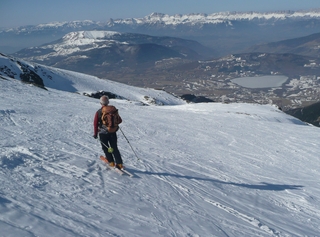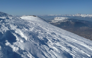 Les peaux sont restées au fond du sac, la crête des Barres est en grande partie dégarnie, sinon la neige est portante. La dénivellation reste très abordable:D+ : 1650 m. Les combes sont bien remplies, les arêtes globalement dégarnies par le vent. Deux rencontres des plus sympathiques: Jean-Claude Guillaud, copain d'adolescence au sommet du Tabor et Claude,un autochtone, copain de l'instant présent au sommet du piquet de Nantes.