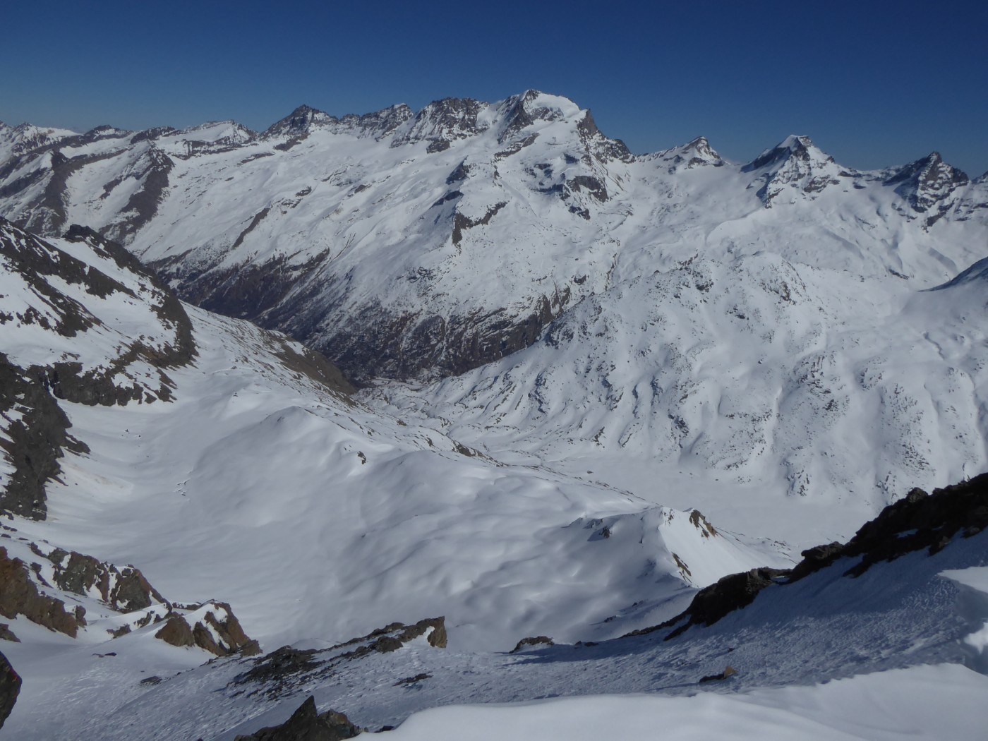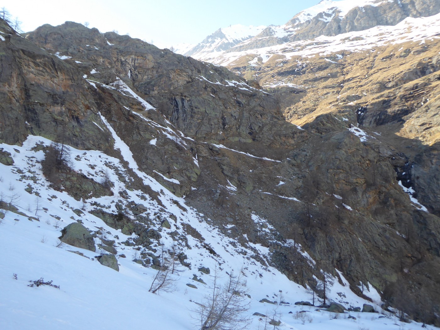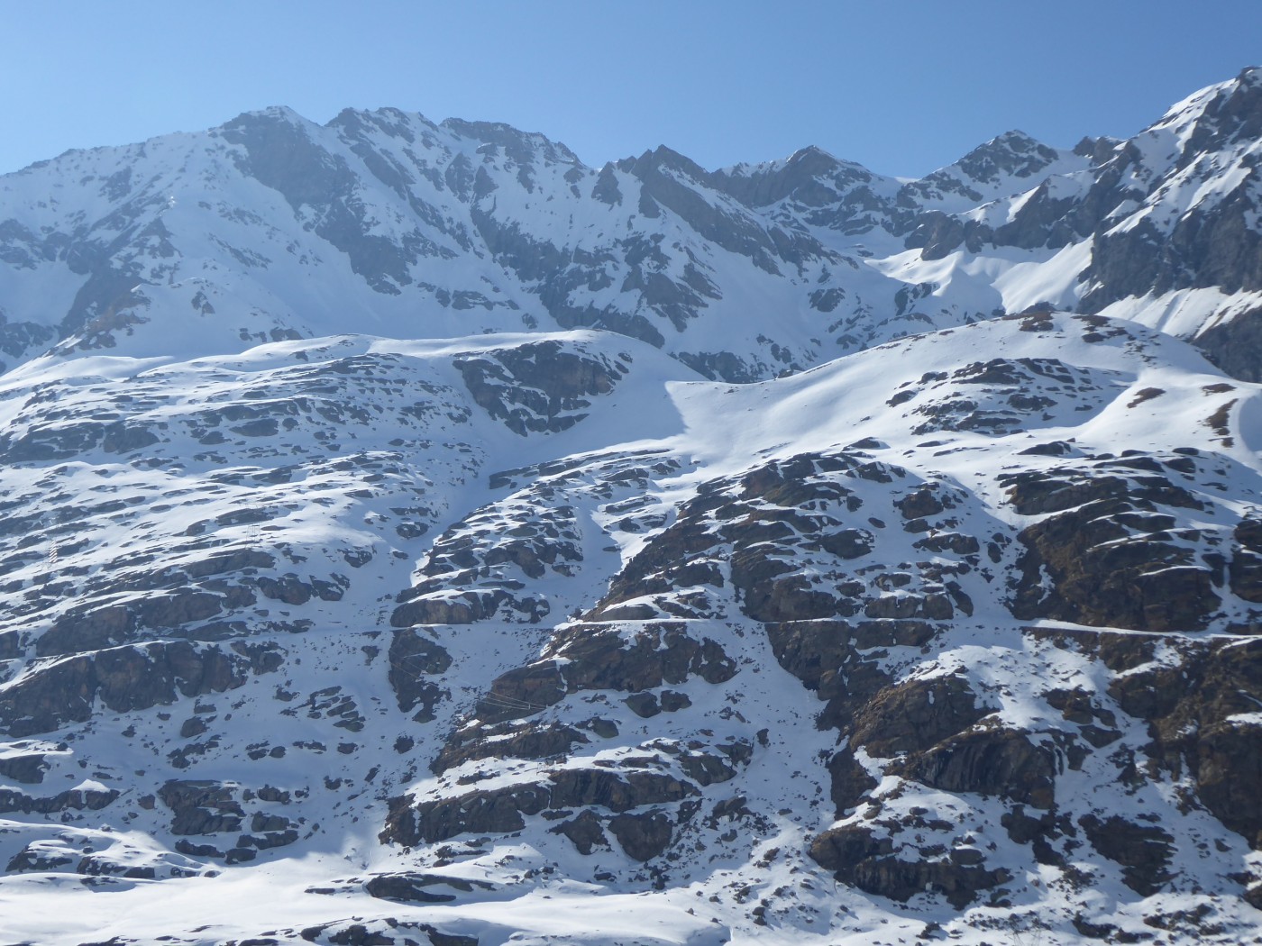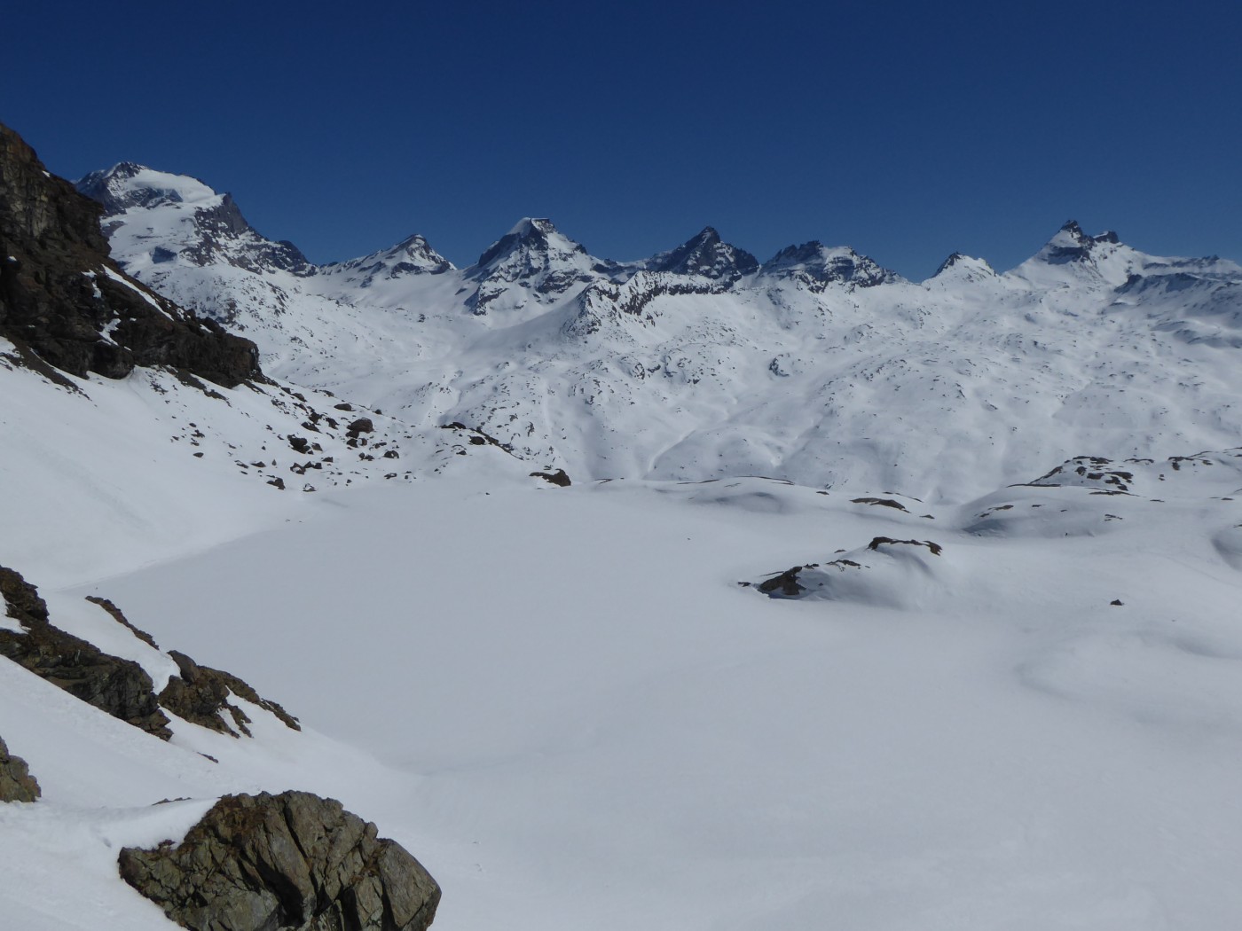 Premier portage de la saison sur D+300m. A la descente, je suis descendu par les pentes nord sous la pointe de la Roley comme décrit dans D5 ce qui m'a permis de skier jusqu'à 2050m env. Belle boucle, dommage qu'il faille déjà porter. L'année dernière, le 19 avril, j'étais venu dans ce secteur pour faire la photo de couverture du topo. Il y avait beaucoup plus de neige et nous étions partis de Breuil skis aux pieds. Pas vu un skieur de la journée par contre beaucoup de chamois comme souvent.