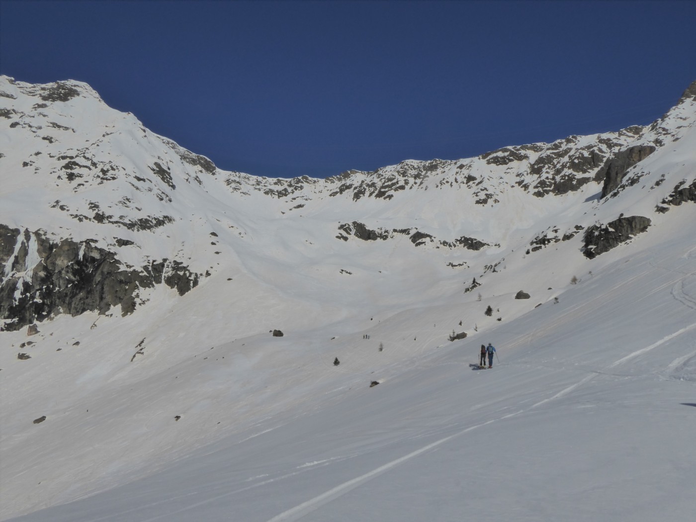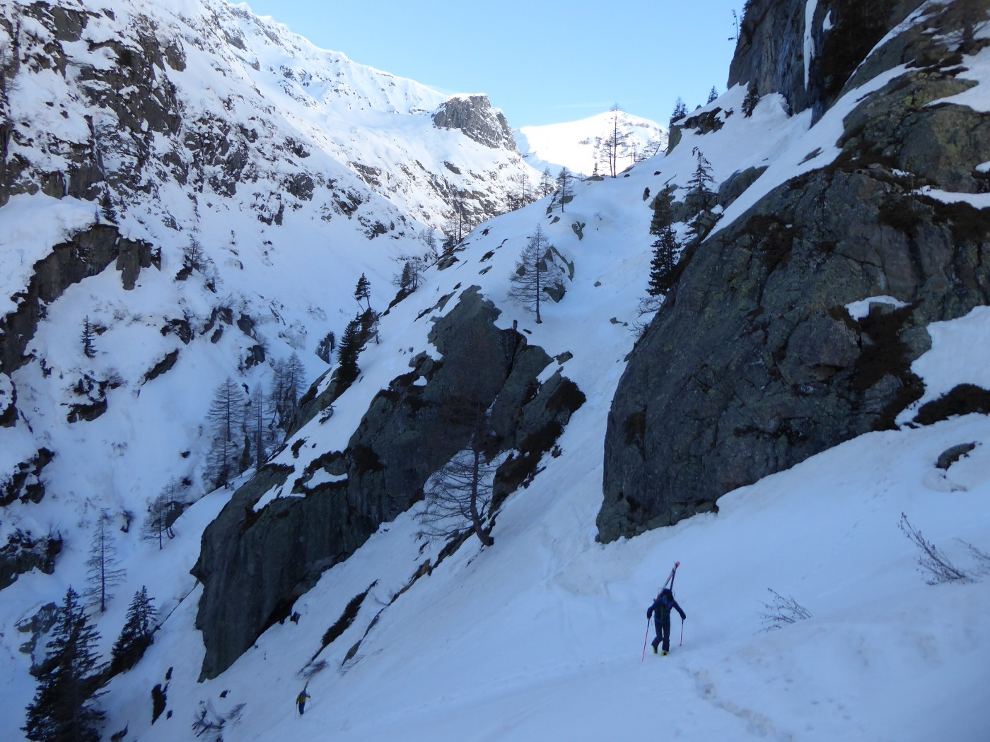 Toujours aussi beau. La gorge en bas du vallon de Tré les Eaux ne passe pas à skis. Nous l'avons contournée par le sentier rive gauche. Les chaines sont en partie visibles. 50m à faire à pied à la montée et autant à la descente au niveau des chaines.