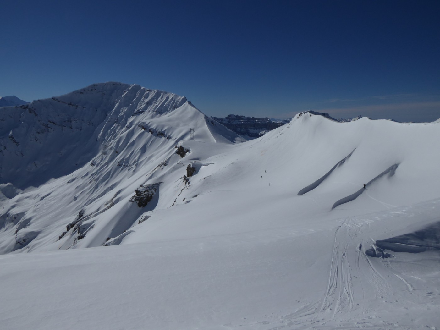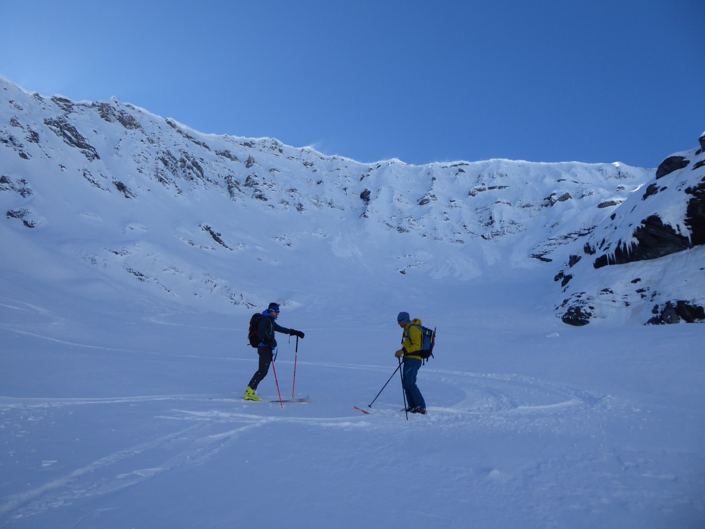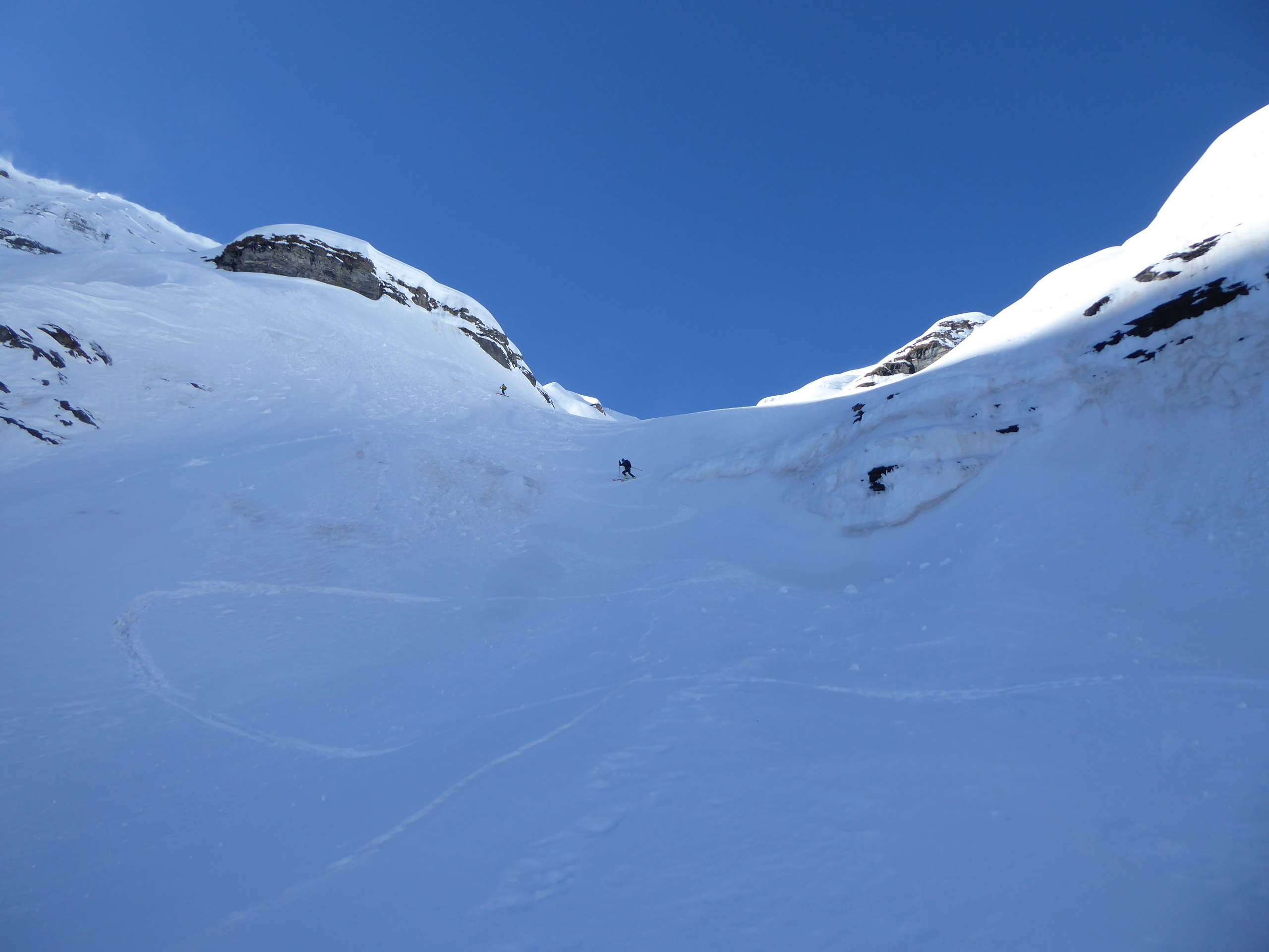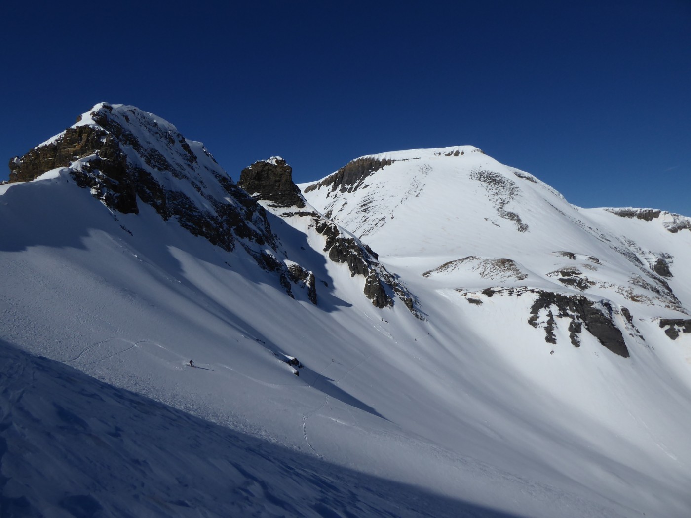 B8 jusqu'au pied de l'arête nord du Buet puis descente par B8.2 dans le vallon de Tré les Eaux. Benoit et Denis on continuer vers le Buet en traçant sur le fil de l'arête.