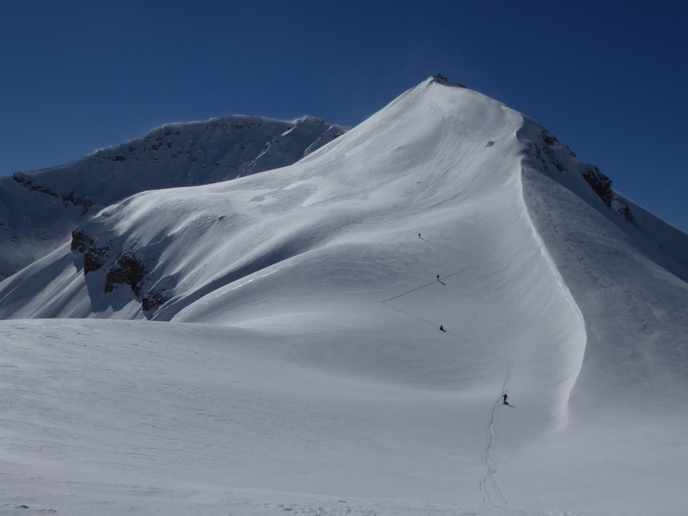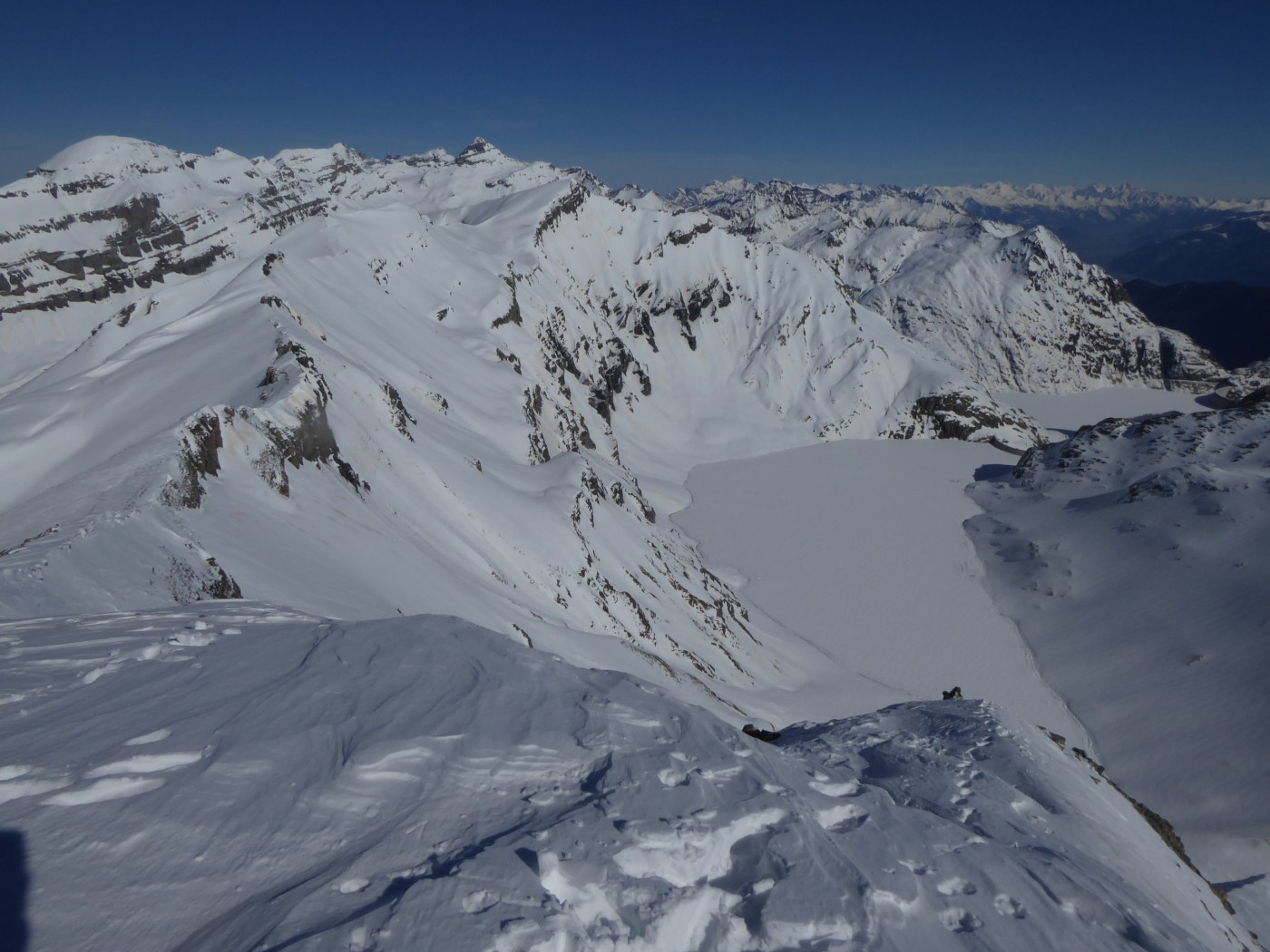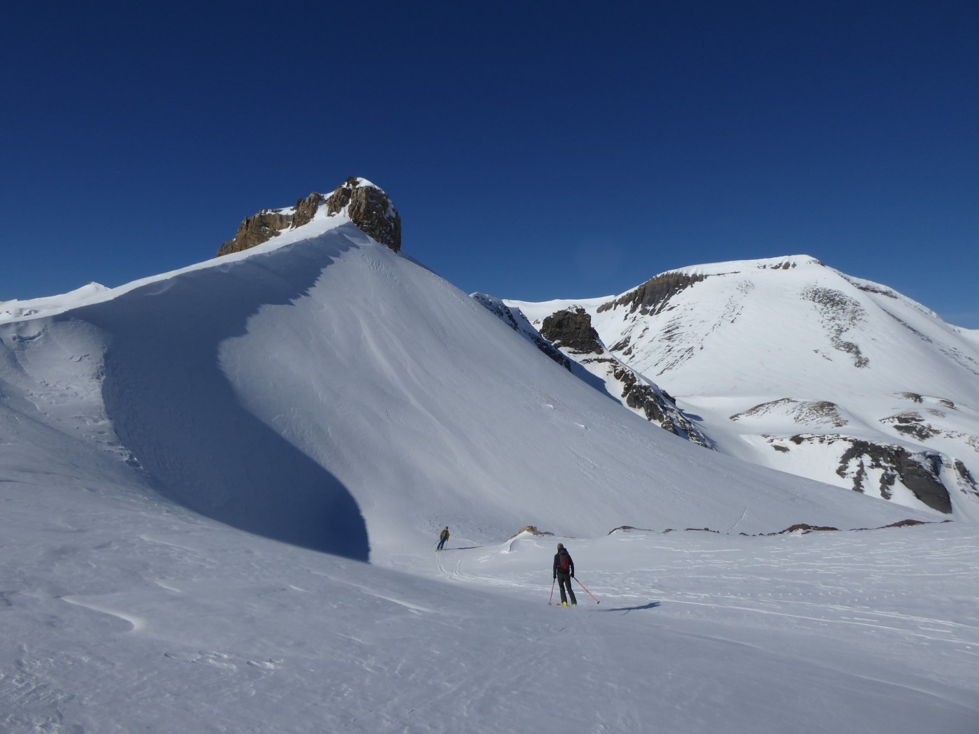 B8 jusqu'au pied de l'arête nord du Buet puis descente par B8.2 dans le vallon de Tré les Eaux. Benoit et Denis on continuer vers le Buet en traçant sur le fil de l'arête.
