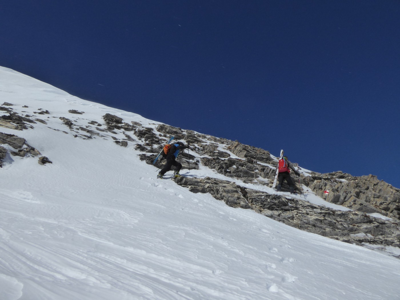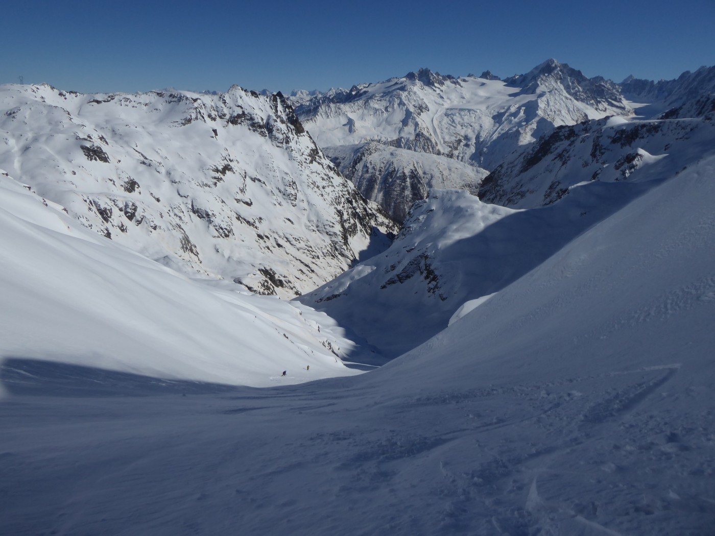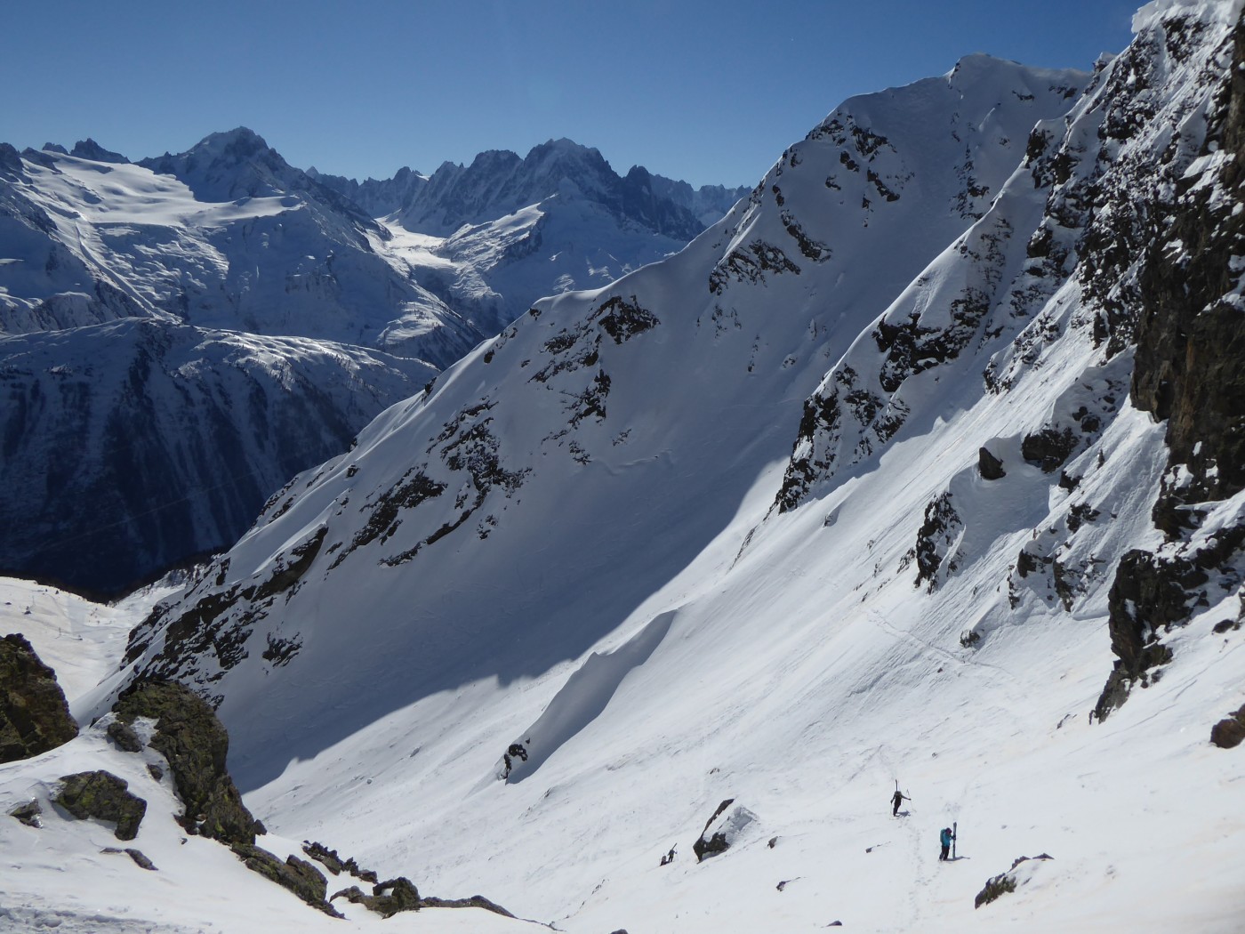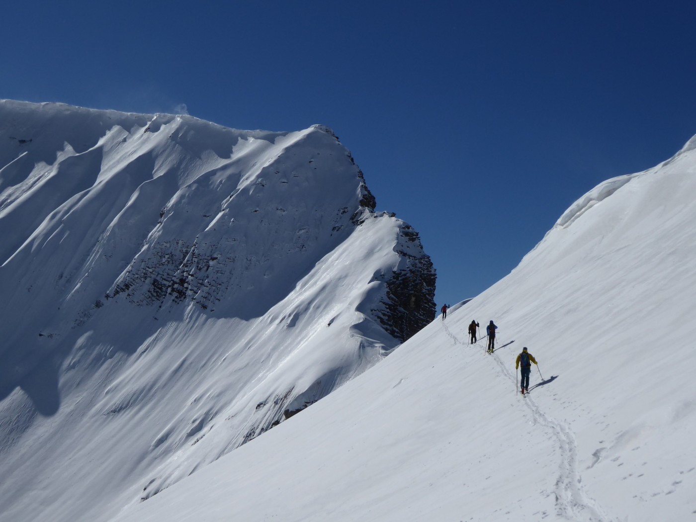 B8 jusqu'au pied de l'arête nord du Buet puis descente par B8.2 dans le vallon de Tré les Eaux. Benoit et Denis on continuer vers le Buet en traçant sur le fil de l'arête.