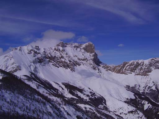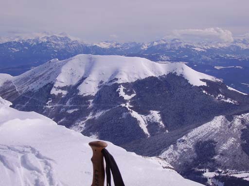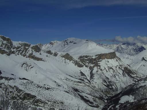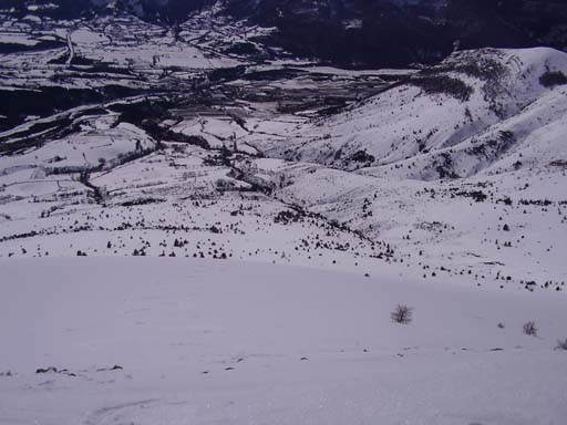 Des Roux, 1140 m, droit devant, en franchissant une bonne dizaine de clôtures, et montée par la belle croupe sud jusqu?à l?antécime de la tête de Clappe (2 p sur IGN), cotée 1988. Le haut de la tête de Clappe étant mal enneigé, sa pente étant orientée sud-est, j?ai préféré m?en tenir là, et descendre comme j?étais monté, en visant les orientations légèrement ouest.