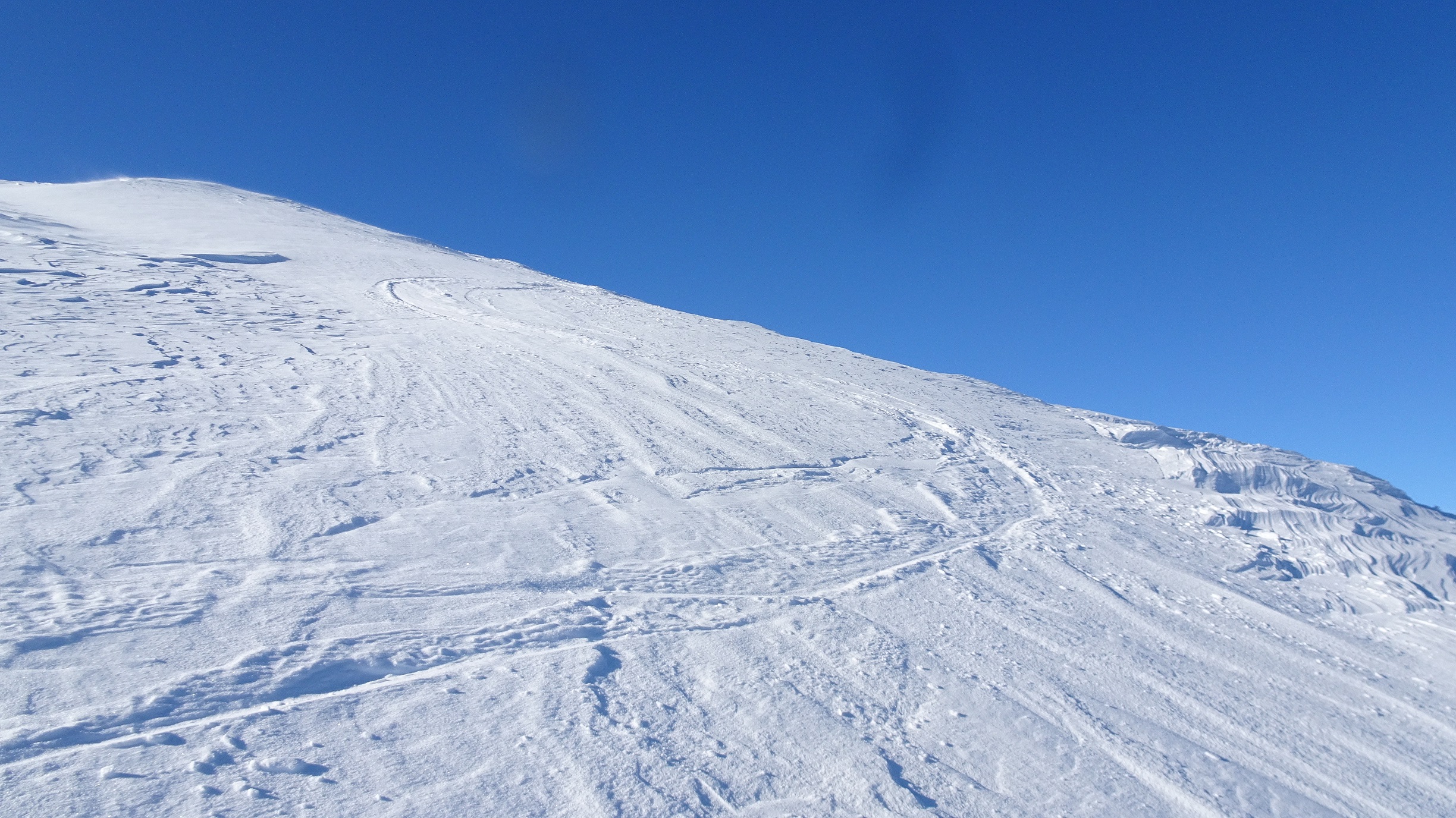 Tricotage sur la croupe des Chamousses I8 où l’embarras du choix en neige vierge est illimité.