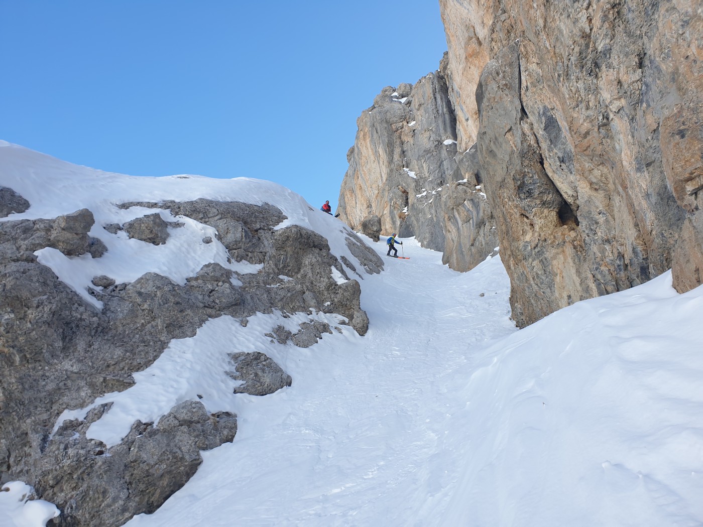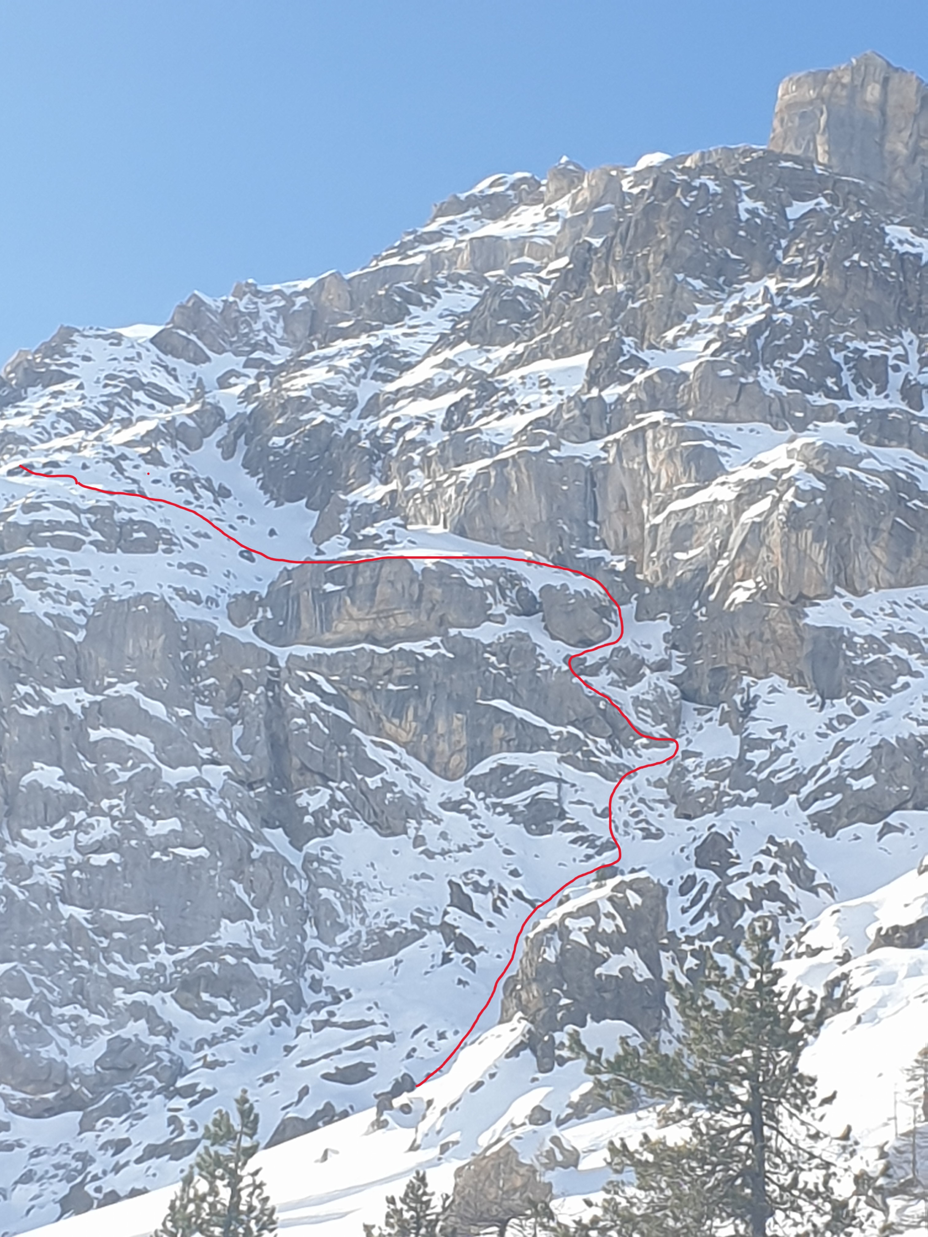 C'est avec un Julien survolté et un Odilon imperturbable que nous avons descendu une probable nouvelle ligne à l'aplomb de la tête de la Courbe. Les conditions exceptionnelles nous ont permis de faire cette descente intégralement à ski.