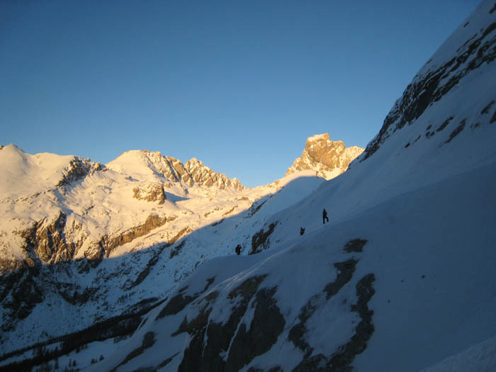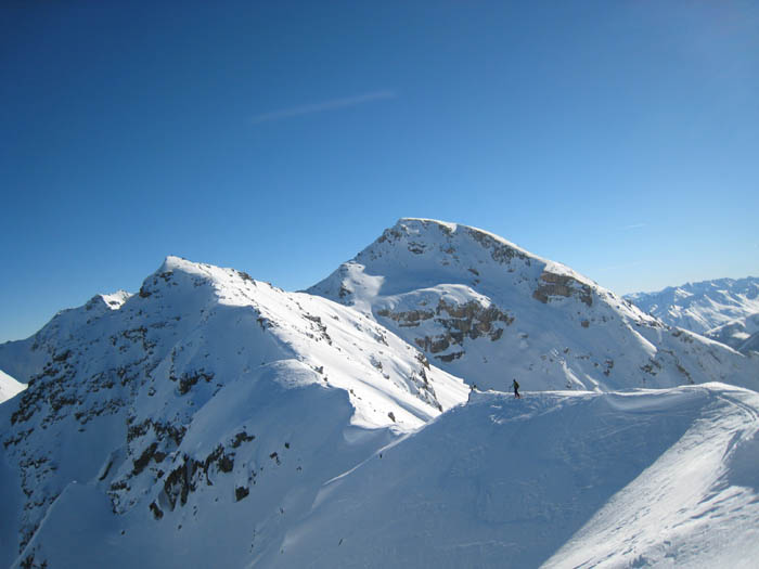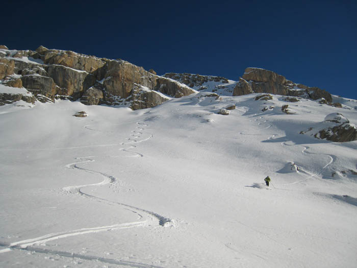Des traces à pas mal d'endroit (dont 5 dans les Baumes ce matin) mais beaucoup de pentes vierges dans le secteur malgré un bel enneigement et des conditions nivologiques assez sereine.