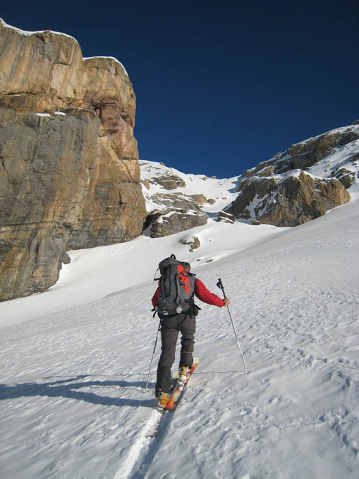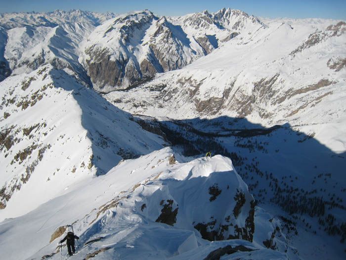 montée Eyssilloun par E 16, descente sud (F1.3) 2450m, montée F1 ouest à la tête de la courbe, descente idem 2600, remontée à la crête : Poursoulina puis Adréchouns, descente du ravin des Baumes par E14 soit env 2000 D+