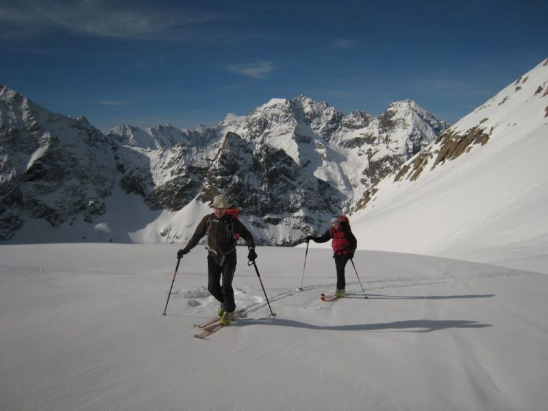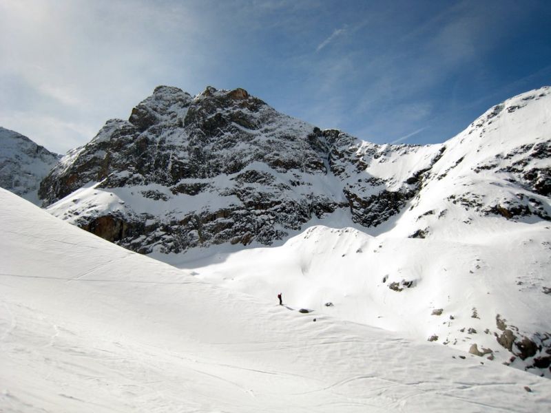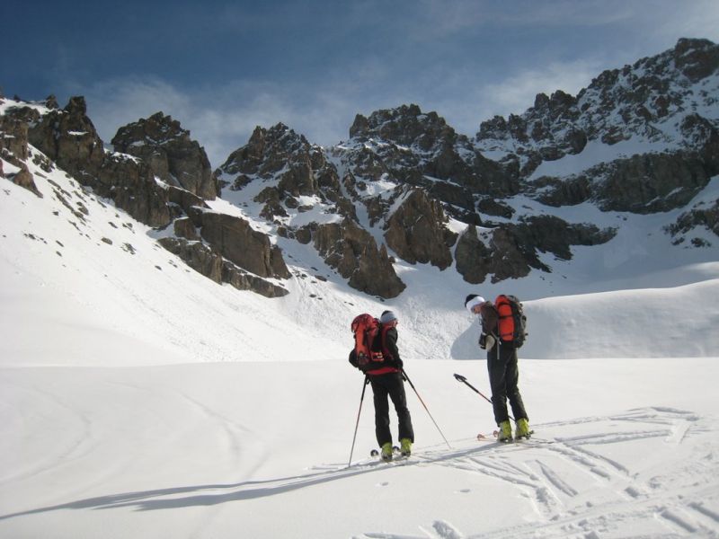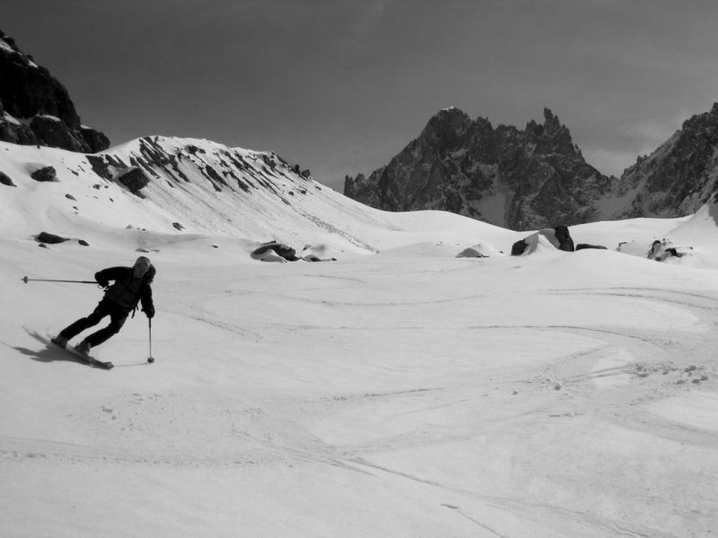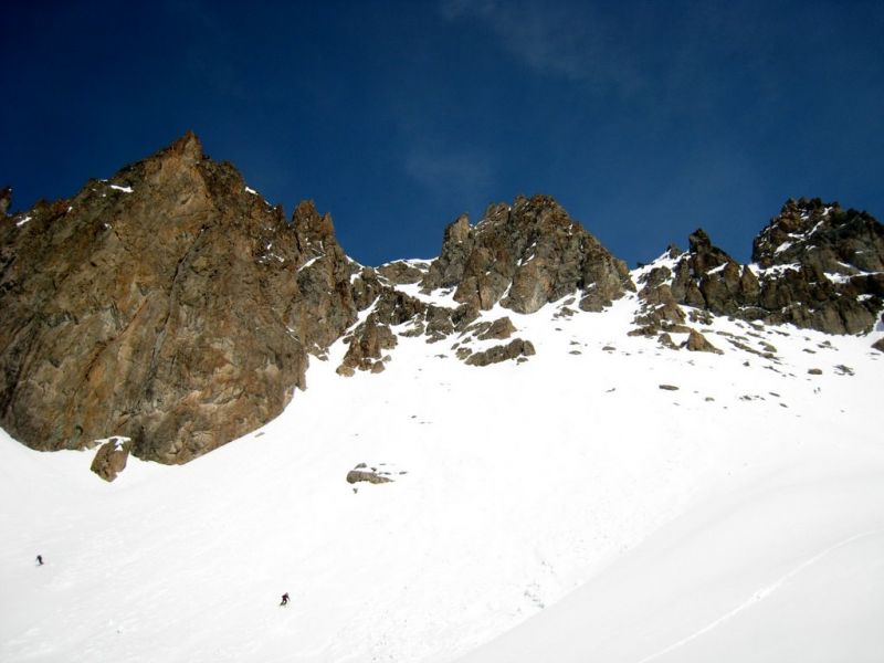 Partis pour la brèche de la Somme classique, bien fournie en boules, pas mal de cailloux, et à l'ombre de Roche d'Alvau. Nous avons opté pour cette pente équivalente, mieux orientée et bien enneigée. Nous nous sommes arrêtés à la brèche qui fait communiquer G19.1 et G21.