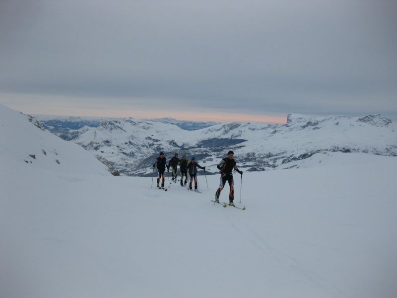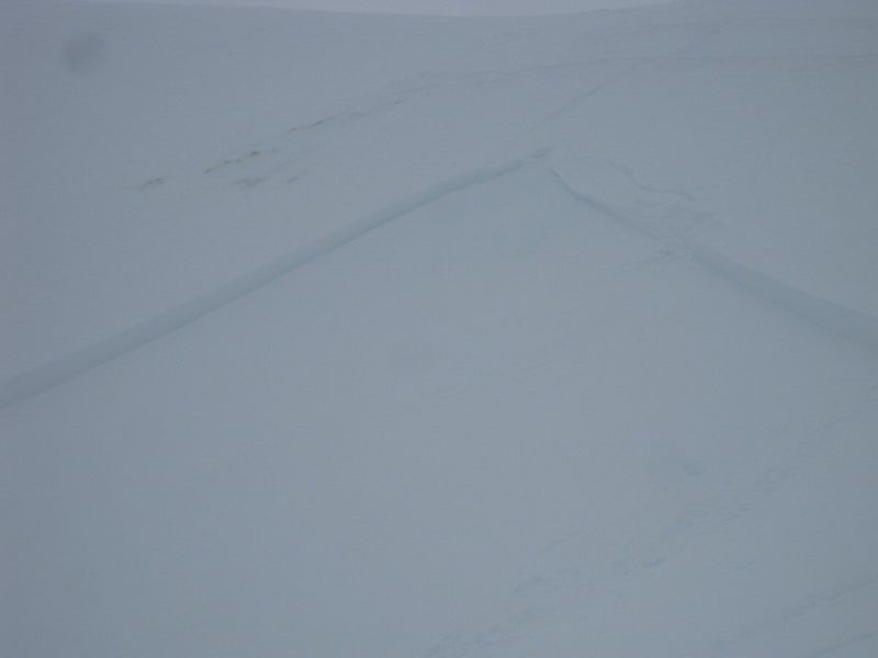 Les pentes Nord est Ouest sont apparemment bien plaquées. Nous avons déclenché une plaque dans la Combe de la Prison, heureusement sans conséquence. Coulée sur une trentaine de mètres. La cassure faisait environ 50 cm d'épaisseur à son maximum.