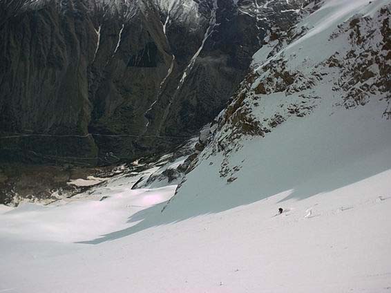 RAS A 2400m, nous avons traverse completement a droite sous la crete du Pierroux, ce qui nous a permis de descendre jusqu'a 1820m skis aux pieds sans dechausser